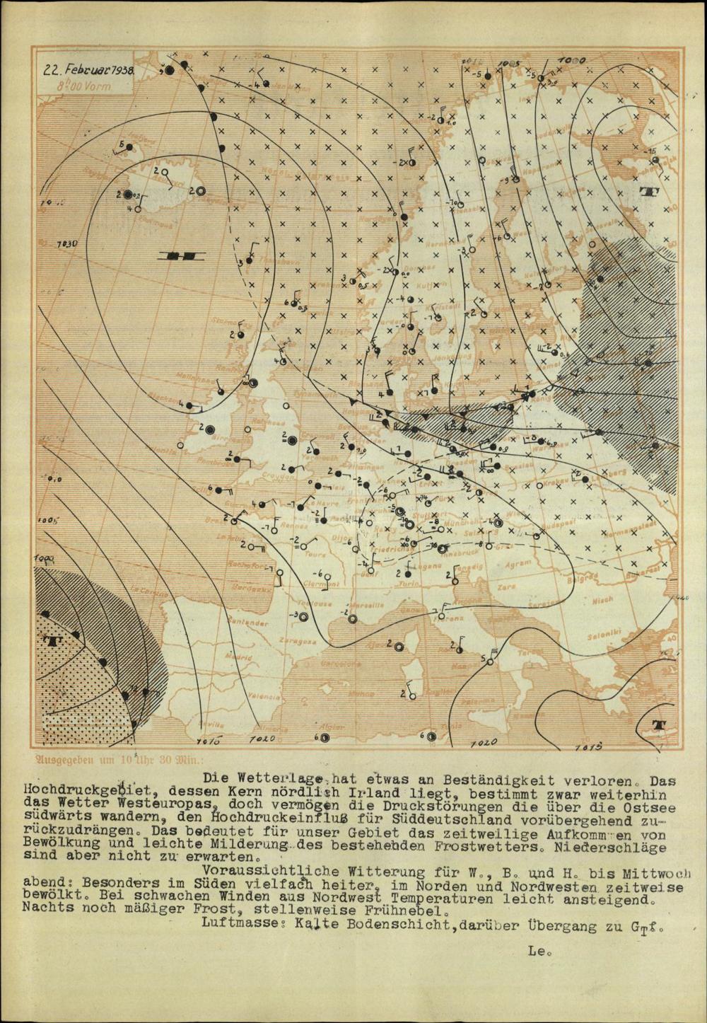 Wetterkarte des Reichswetterdienstes