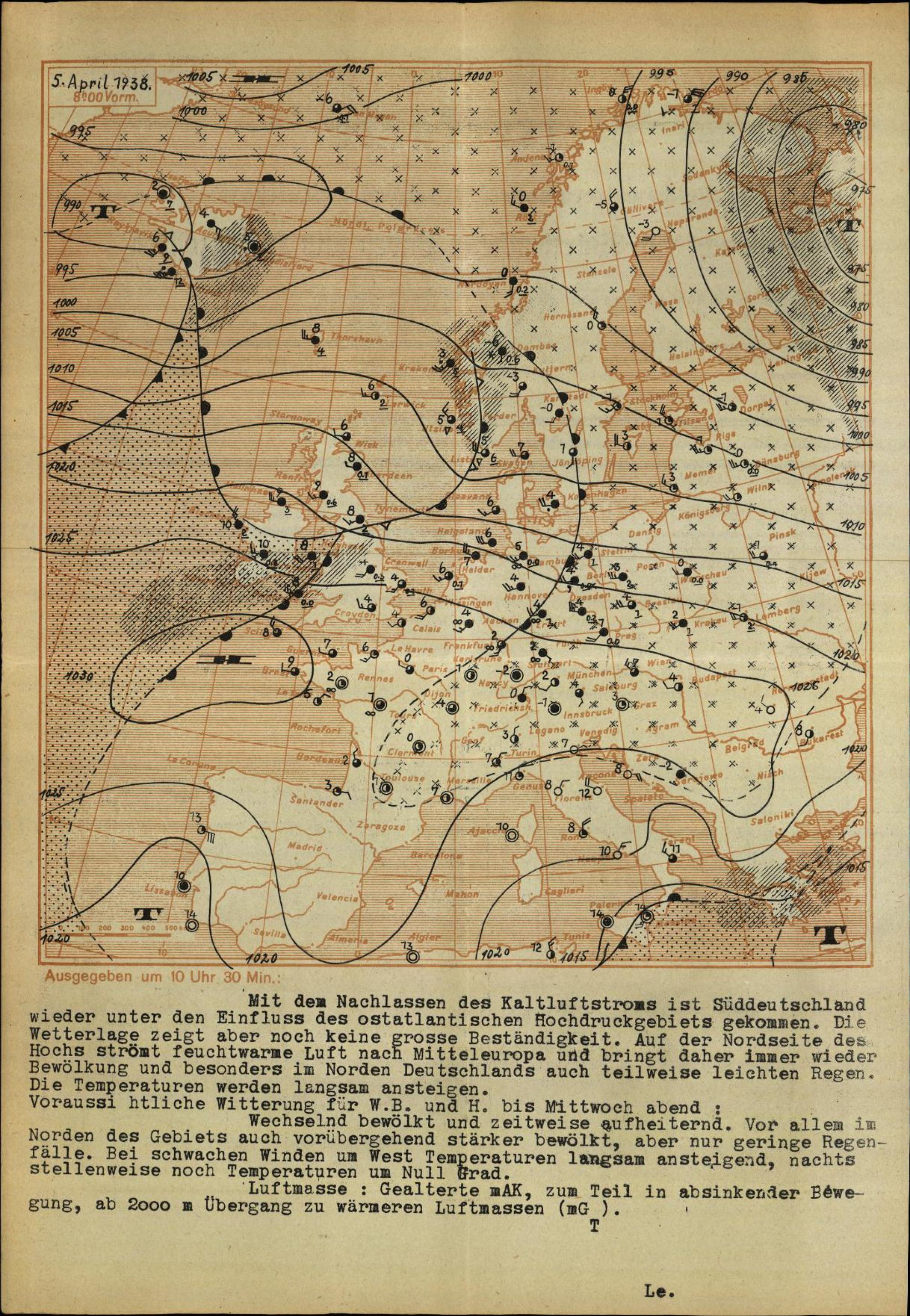 Wetterkarte des Reichswetterdienstes
