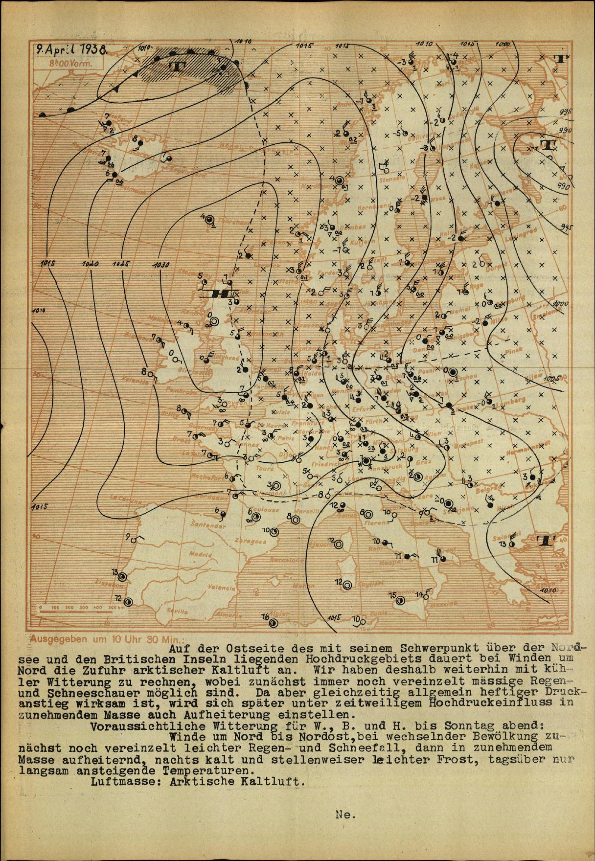 Wetterkarte des Reichswetterdienstes