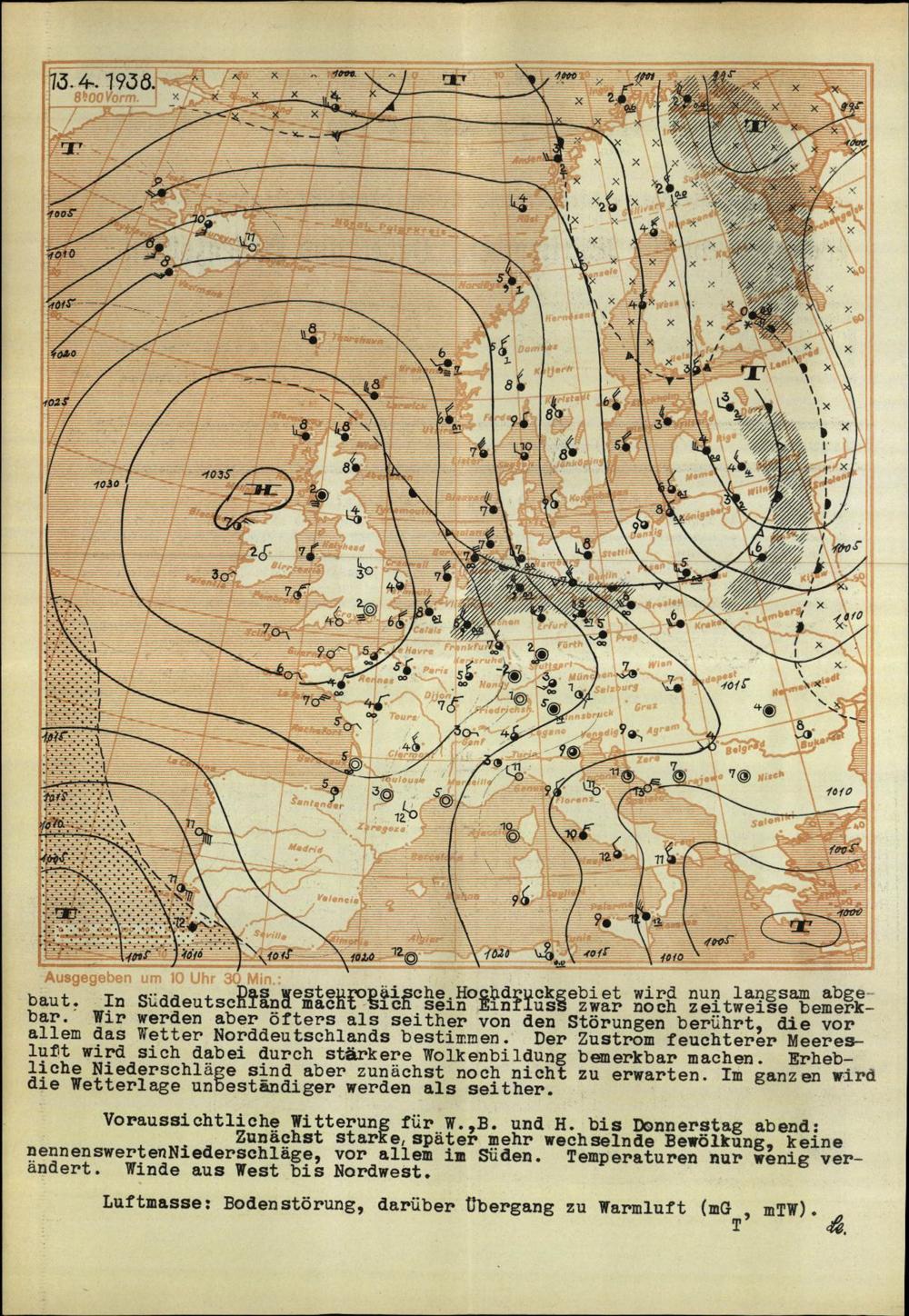 Wetterkarte des Reichswetterdienstes