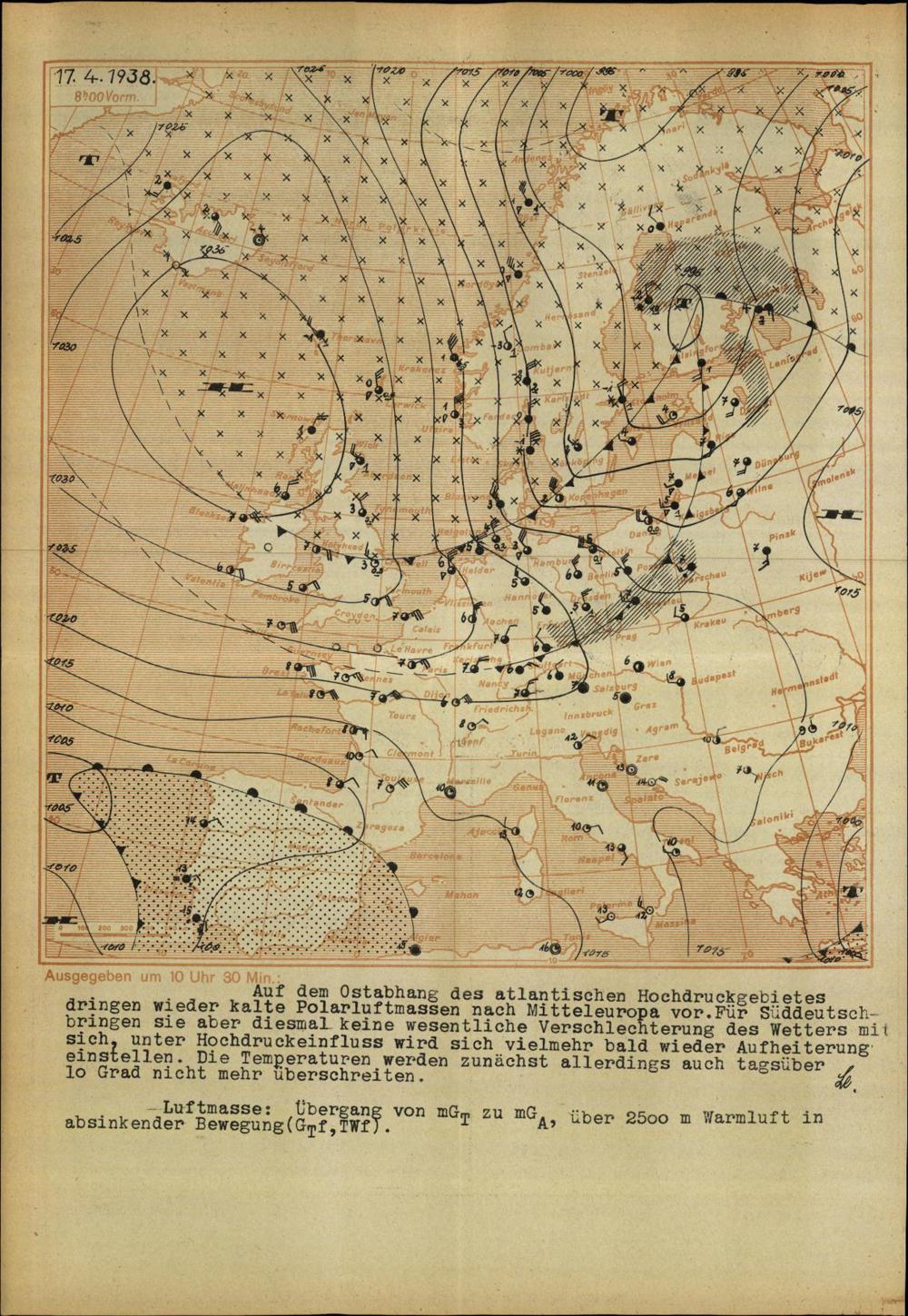 Wetterkarte des Reichswetterdienstes