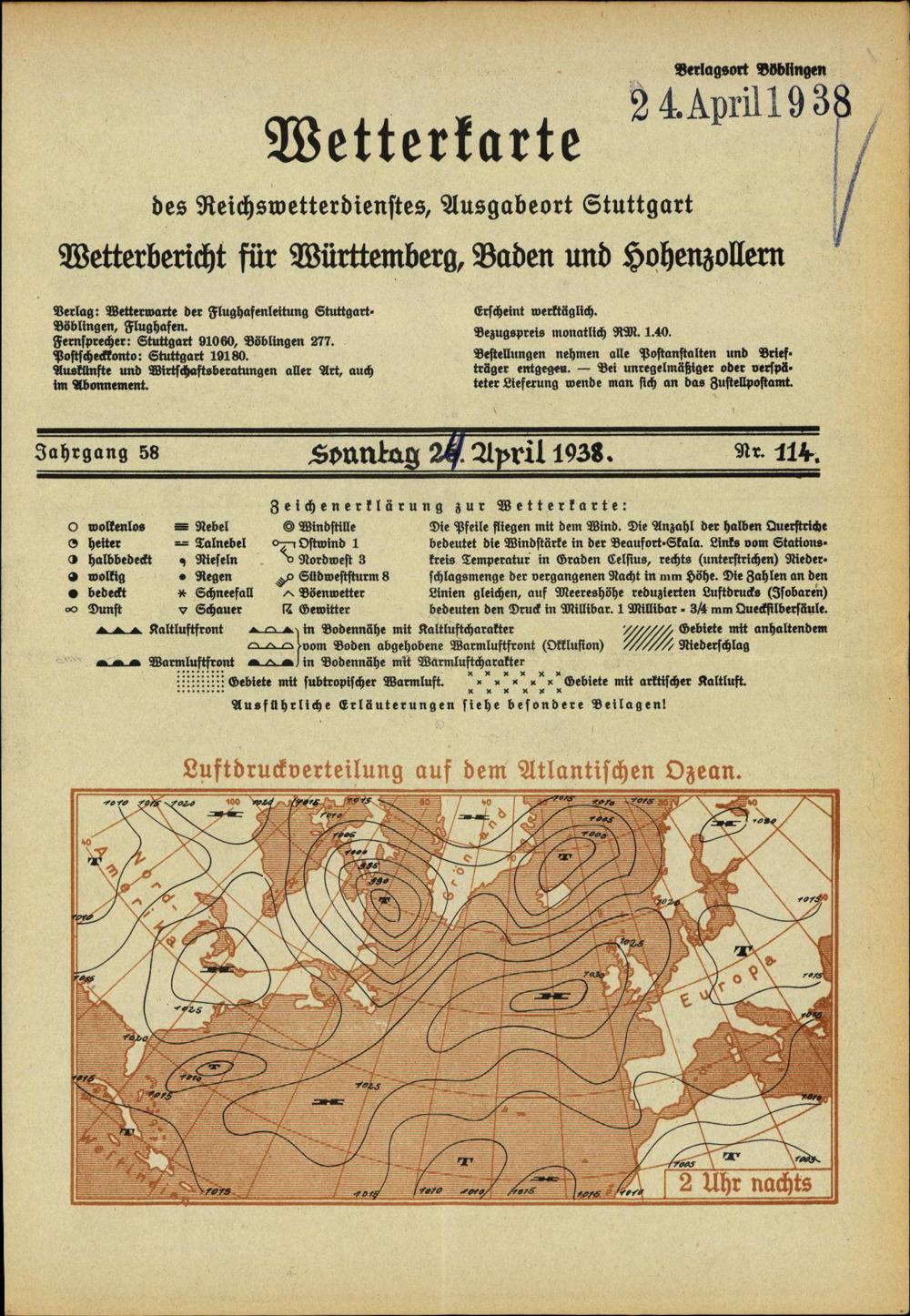 Wetterkarte des Reichswetterdienstes