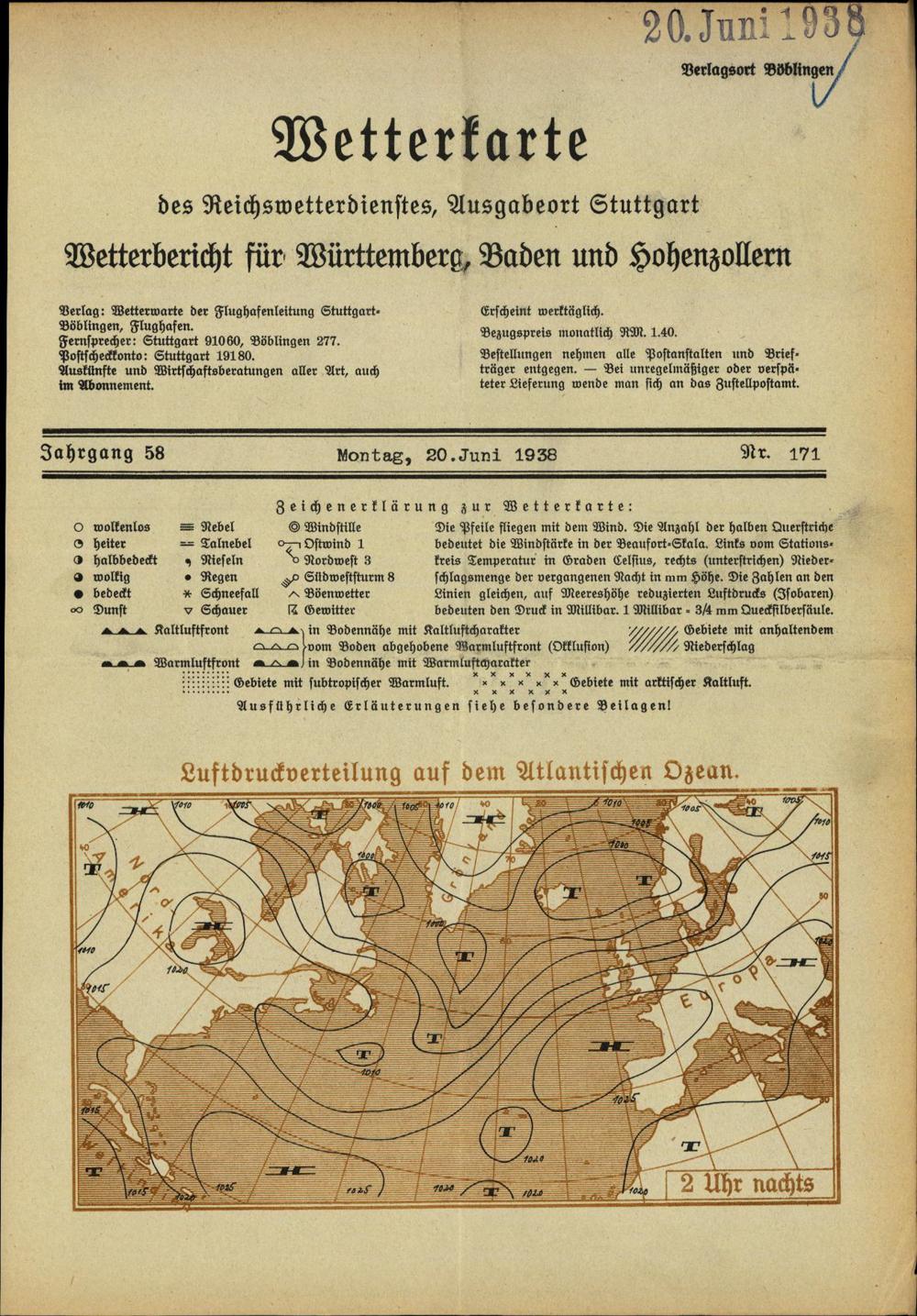 Wetterkarte des Reichswetterdienstes
