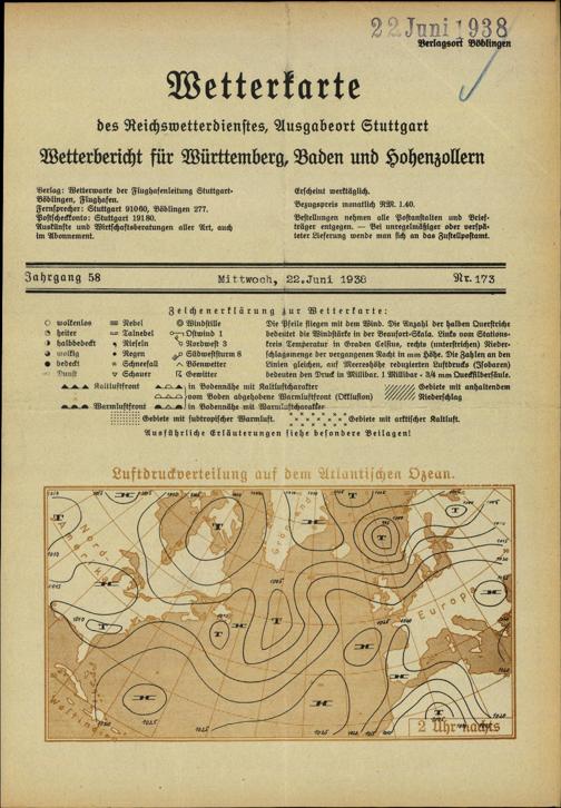 Wetterkarte des Reichswetterdienstes
