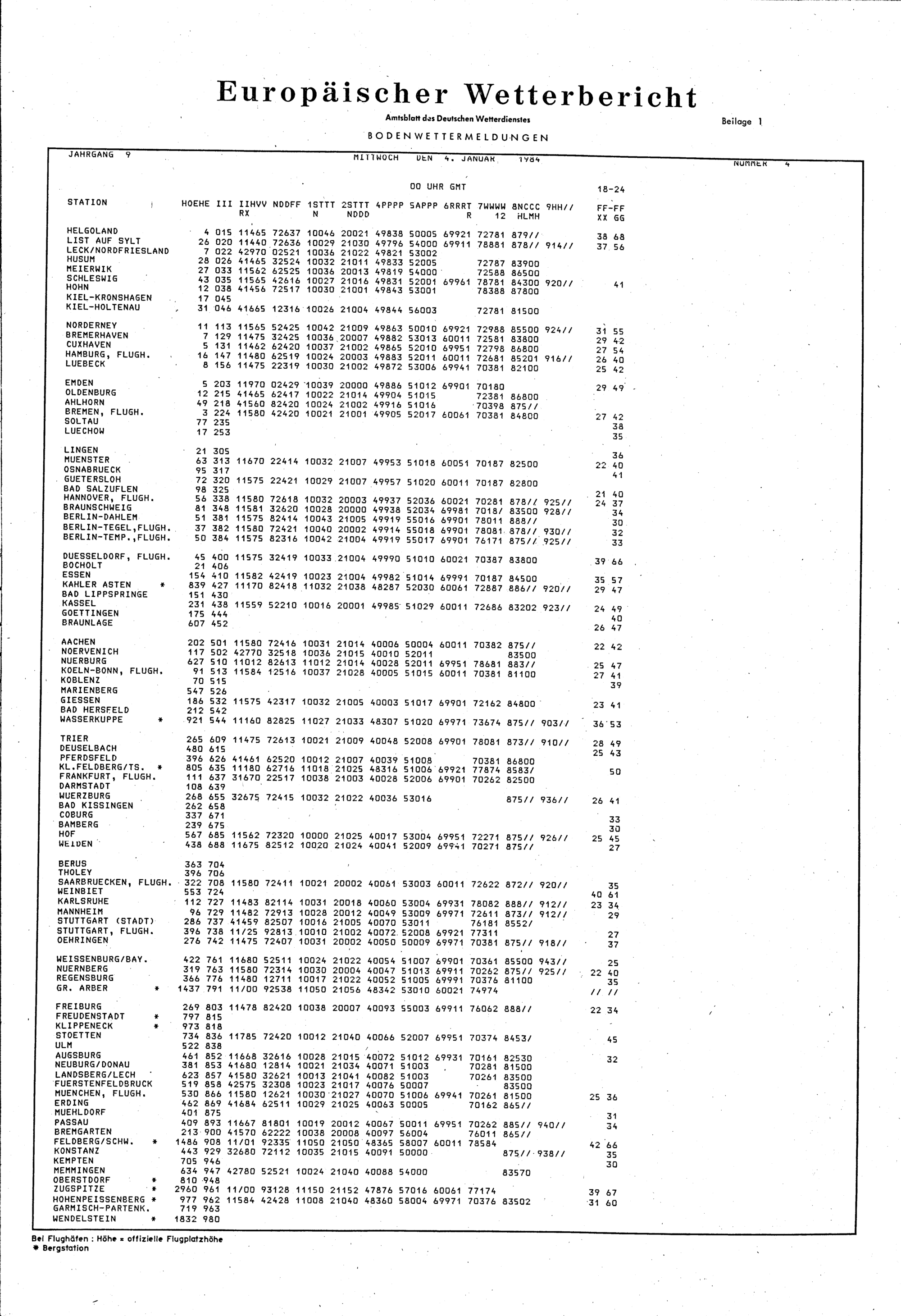 Europäischer Wetterbericht. Beilage 1, Bodenwettermeldungen. 1976-1994
