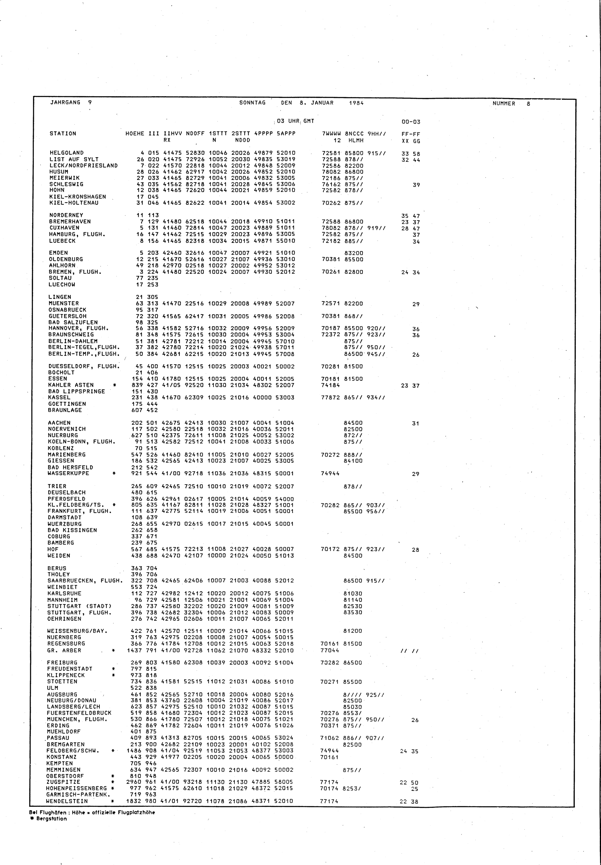 Europäischer Wetterbericht. Beilage 1, Bodenwettermeldungen. 1976-1994