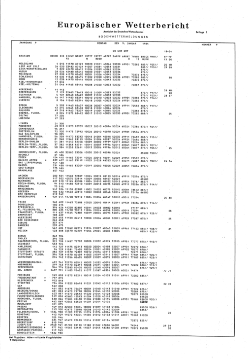 Europäischer Wetterbericht. Beilage 1, Bodenwettermeldungen. 1976-1994