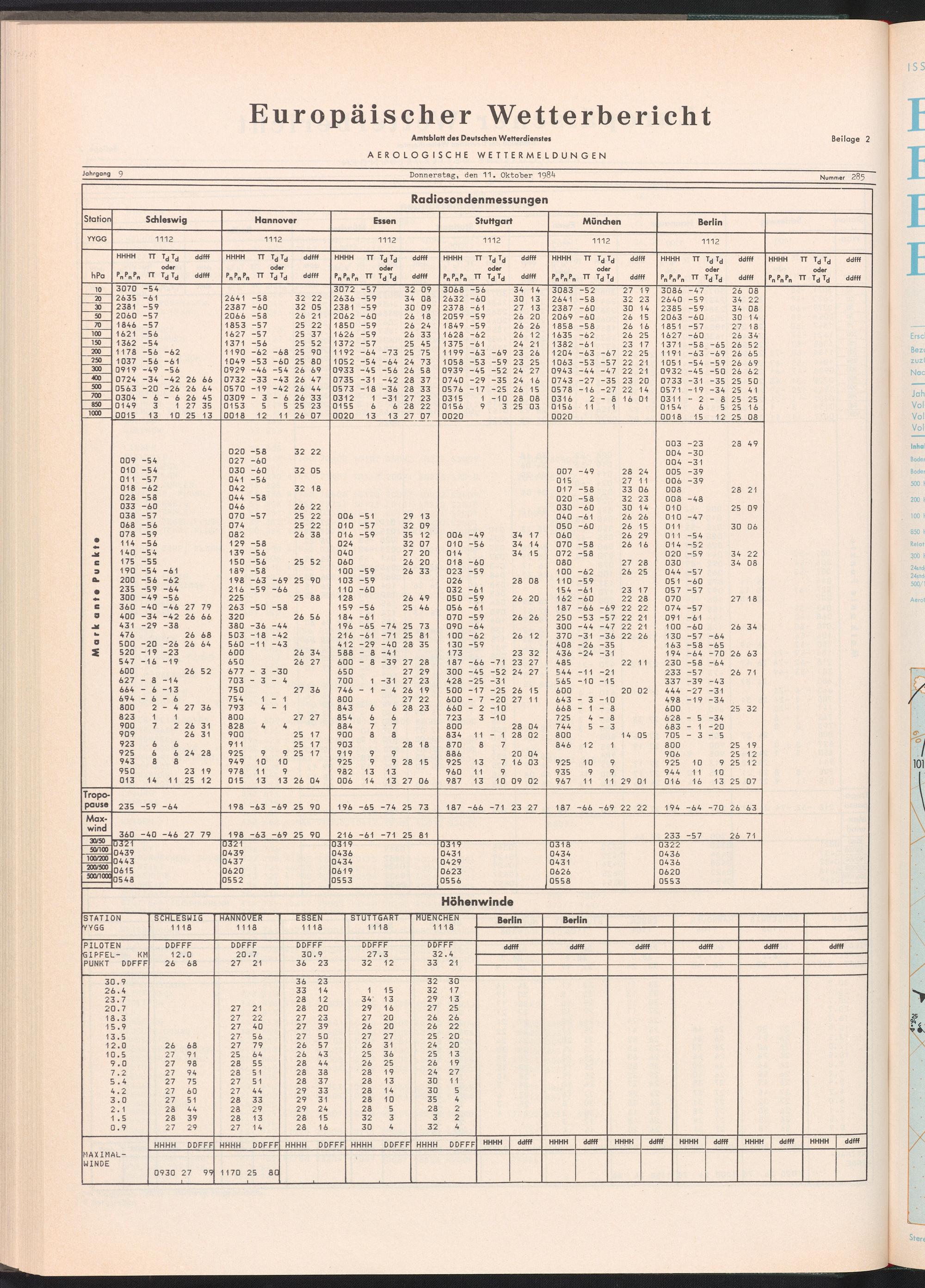 Europäischer Wetterbericht. Beilage 1, Bodenwettermeldungen. 1976-1994