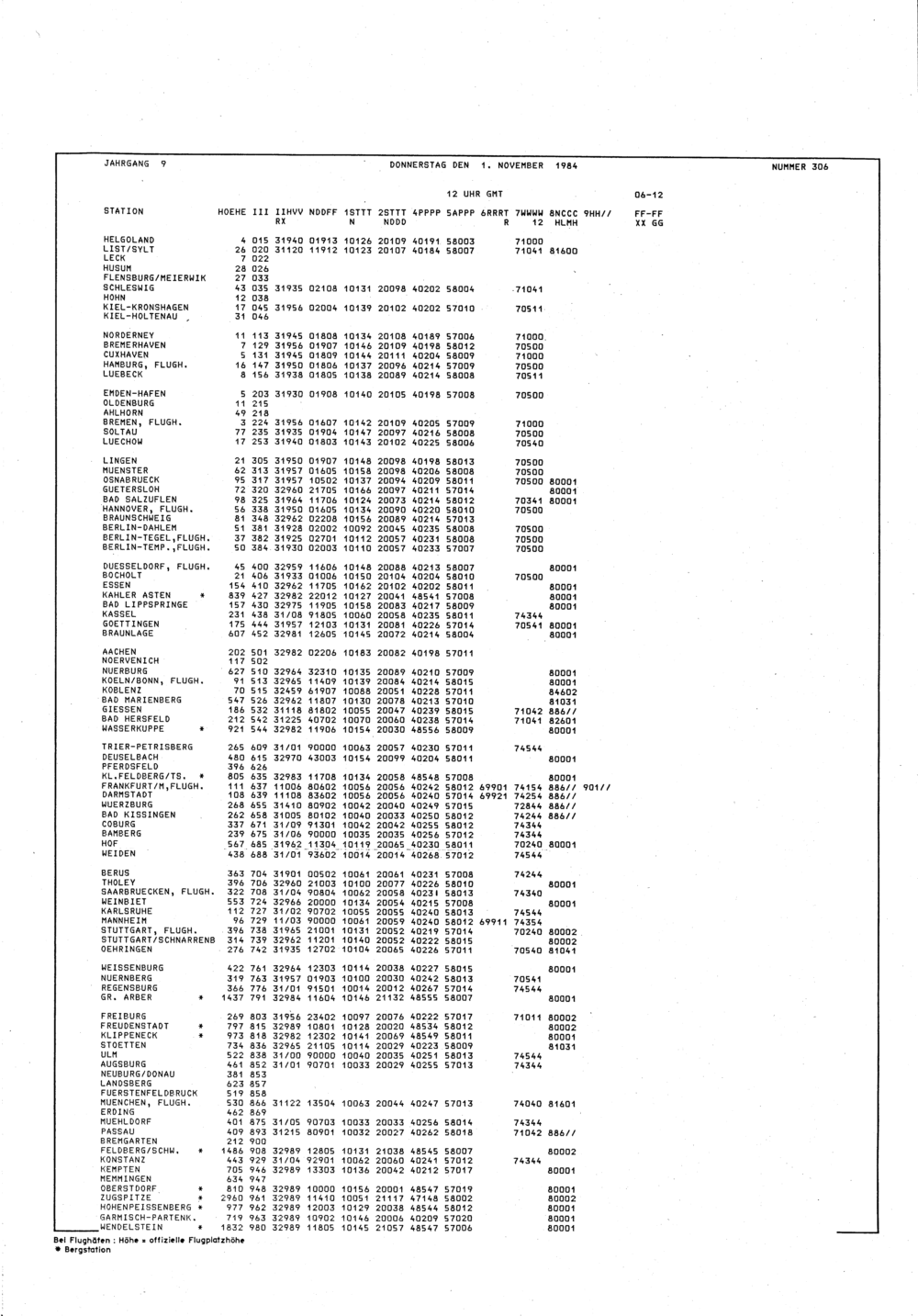 Europäischer Wetterbericht. Beilage 1, Bodenwettermeldungen. 1976-1994