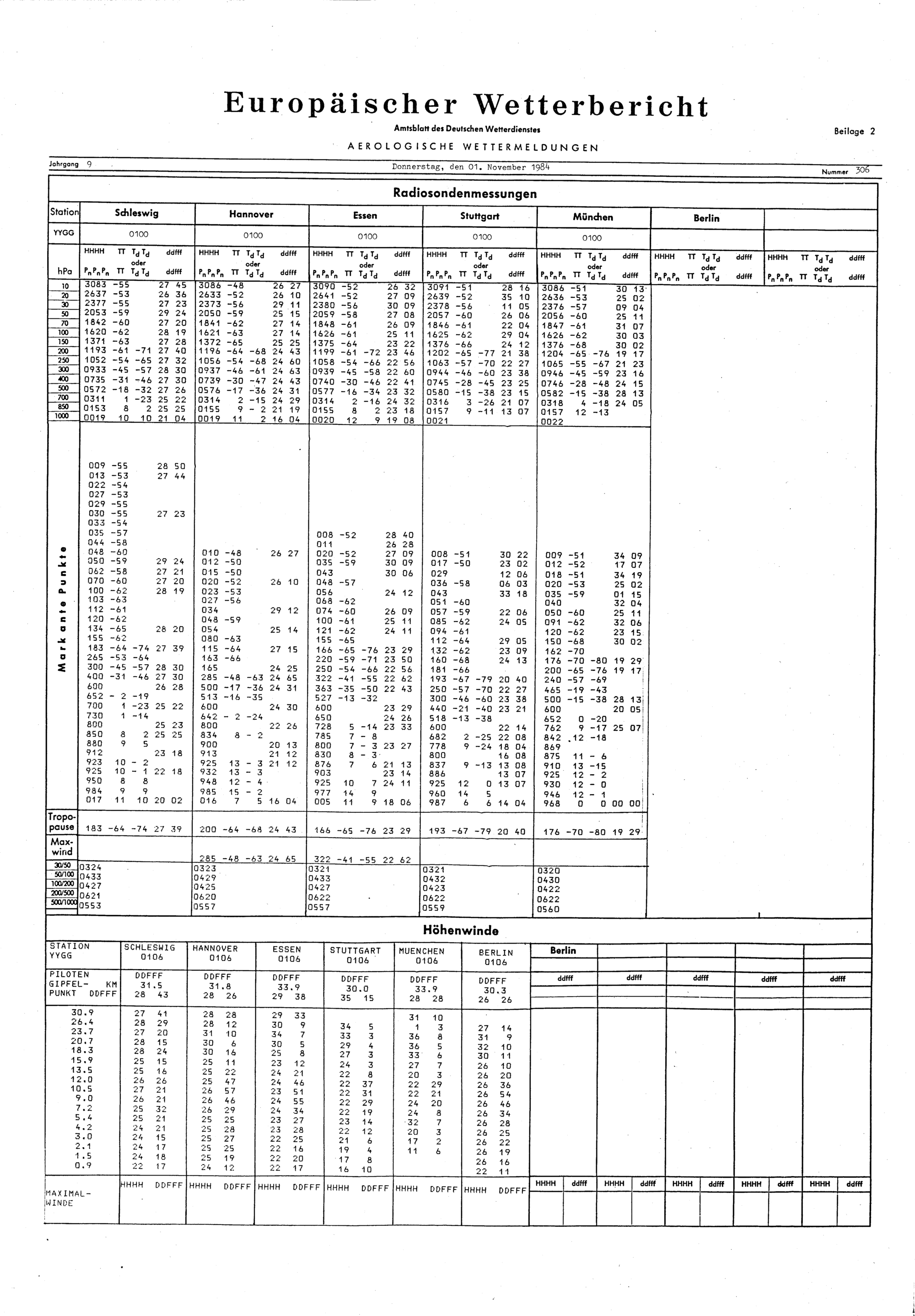 Europäischer Wetterbericht. Beilage 1, Bodenwettermeldungen. 1976-1994