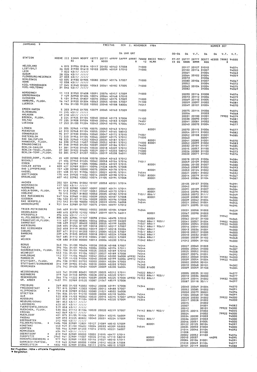 Europäischer Wetterbericht. Beilage 1, Bodenwettermeldungen. 1976-1994