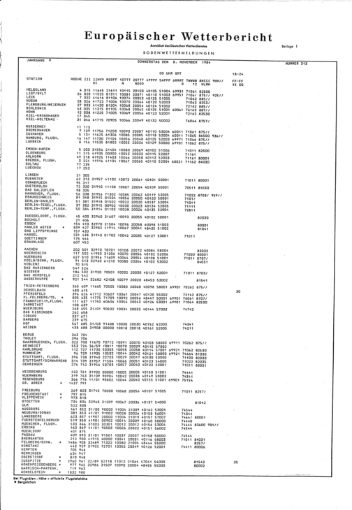 Europäischer Wetterbericht. Beilage 1, Bodenwettermeldungen. 1976-1994