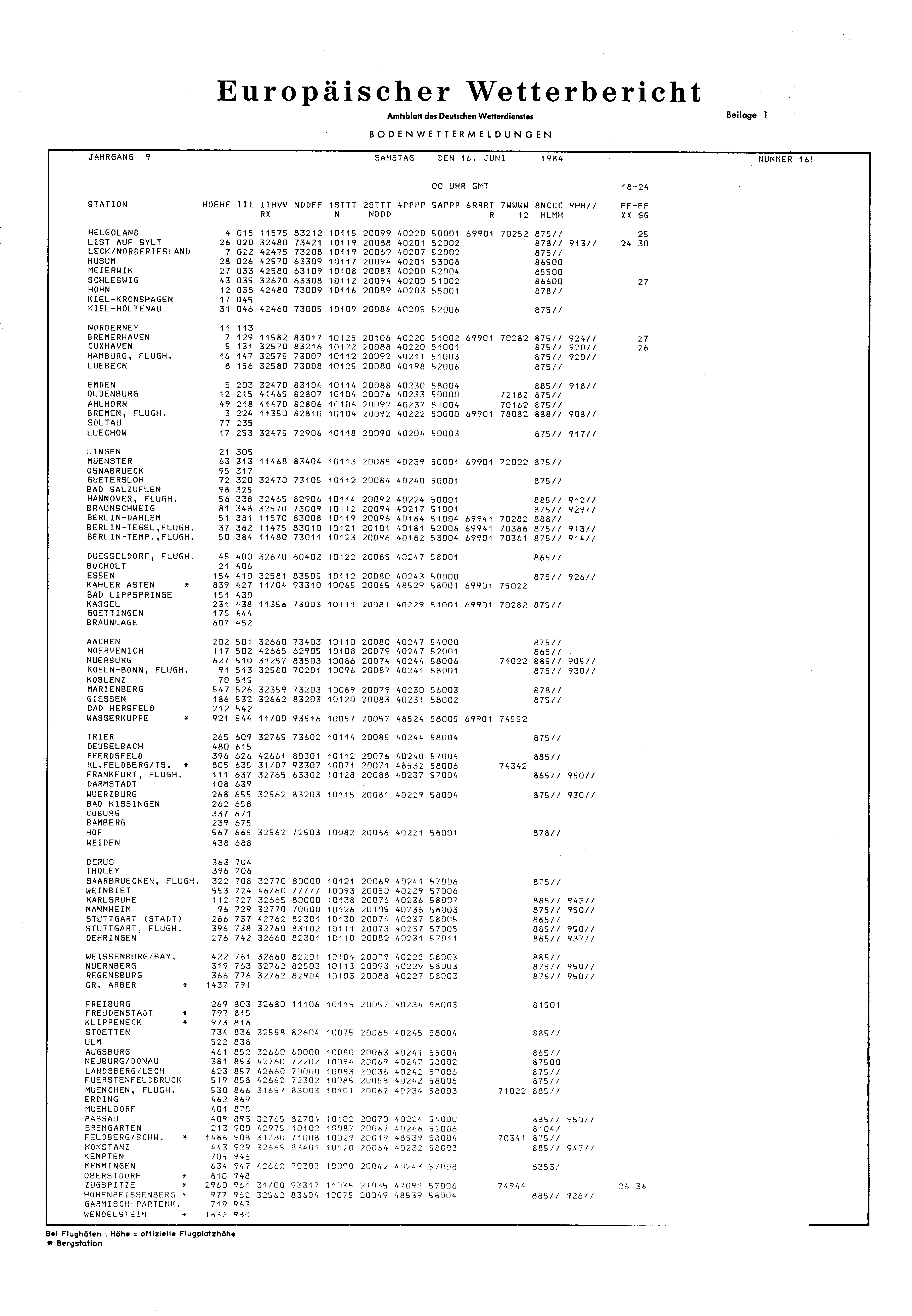 Europäischer Wetterbericht. Beilage 1, Bodenwettermeldungen. 1976-1994