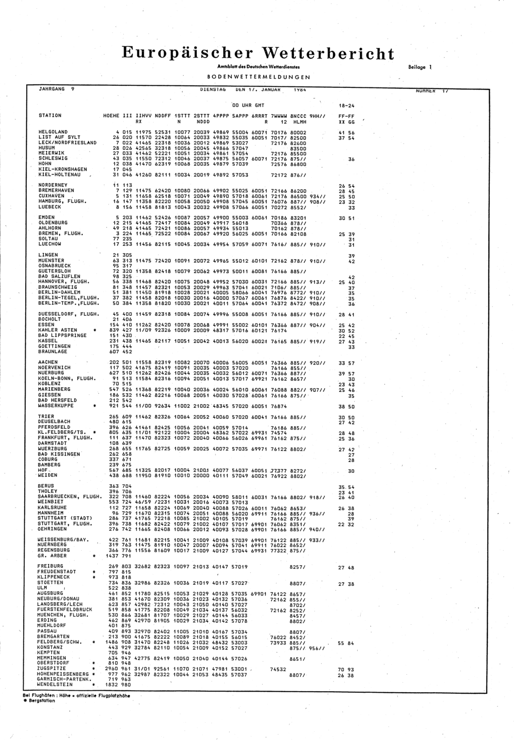 Europäischer Wetterbericht. Beilage 1, Bodenwettermeldungen. 1976-1994