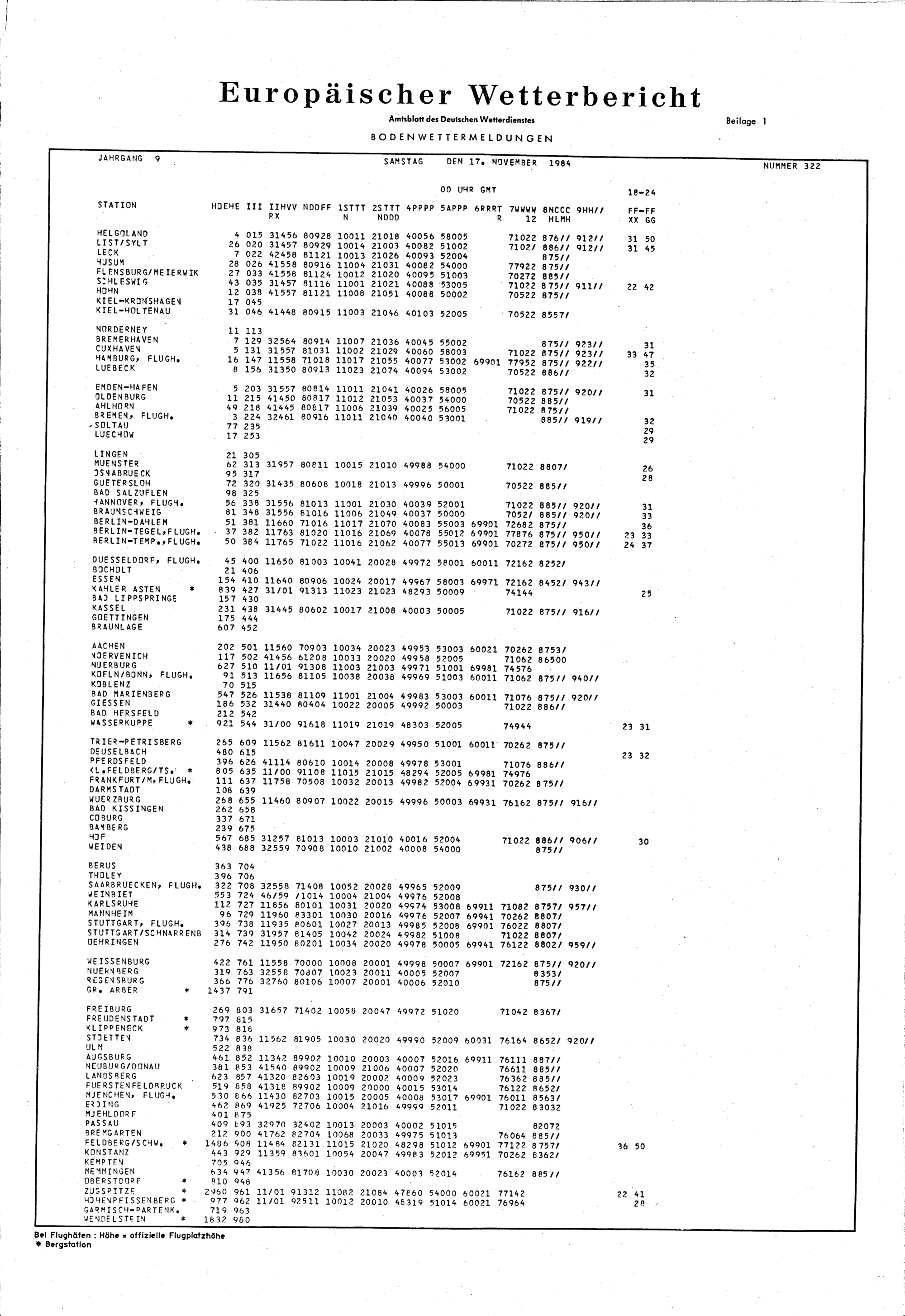 Europäischer Wetterbericht. Beilage 1, Bodenwettermeldungen. 1976-1994