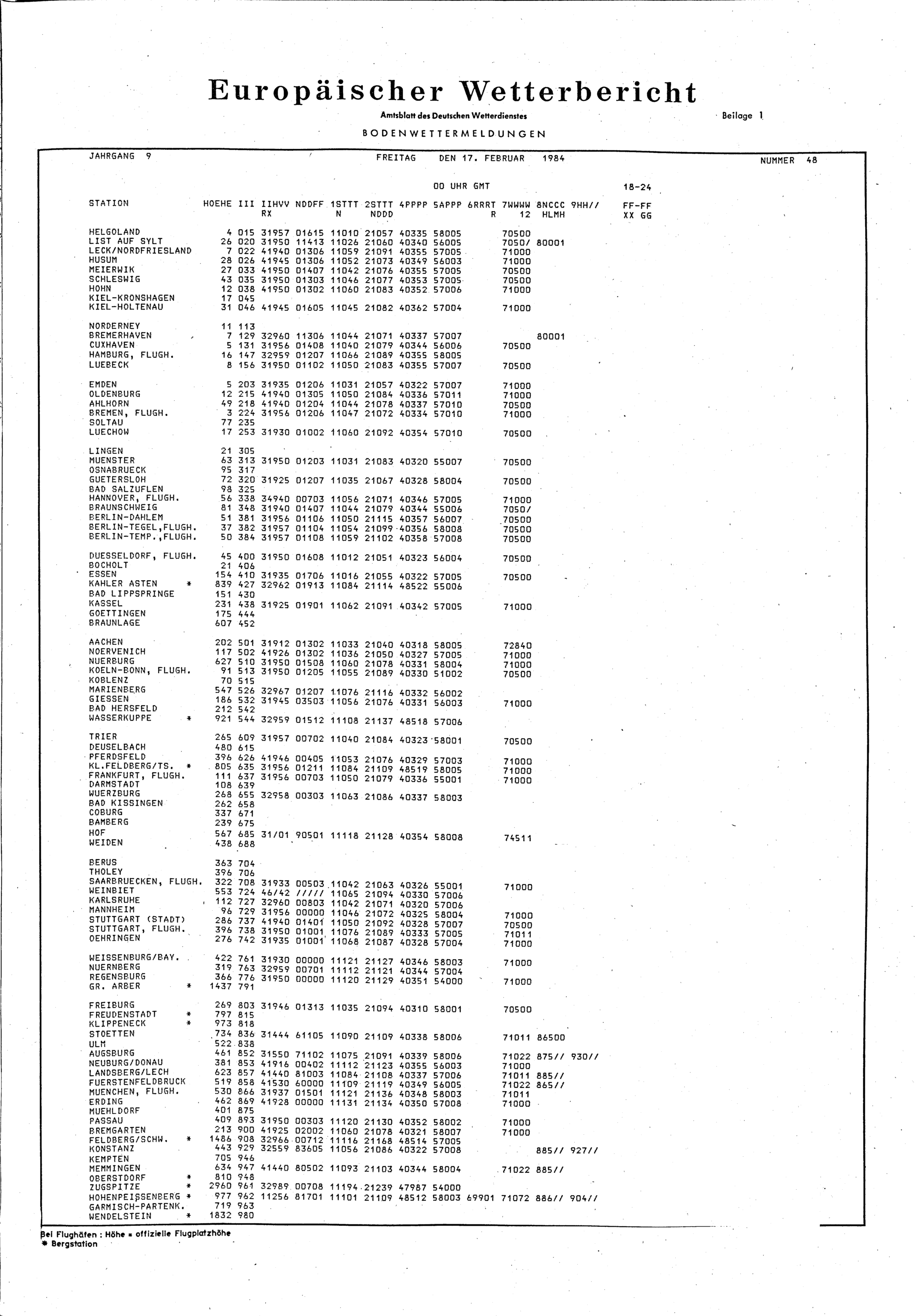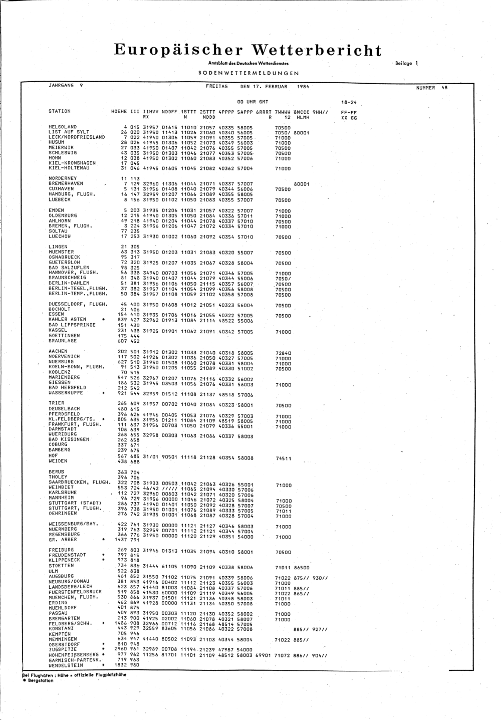 Europäischer Wetterbericht. Beilage 1, Bodenwettermeldungen. 1976-1994