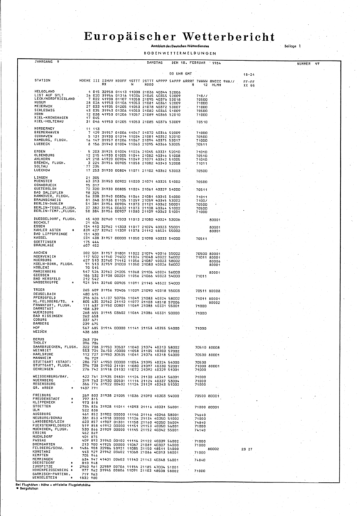 Europäischer Wetterbericht. Beilage 1, Bodenwettermeldungen. 1976-1994