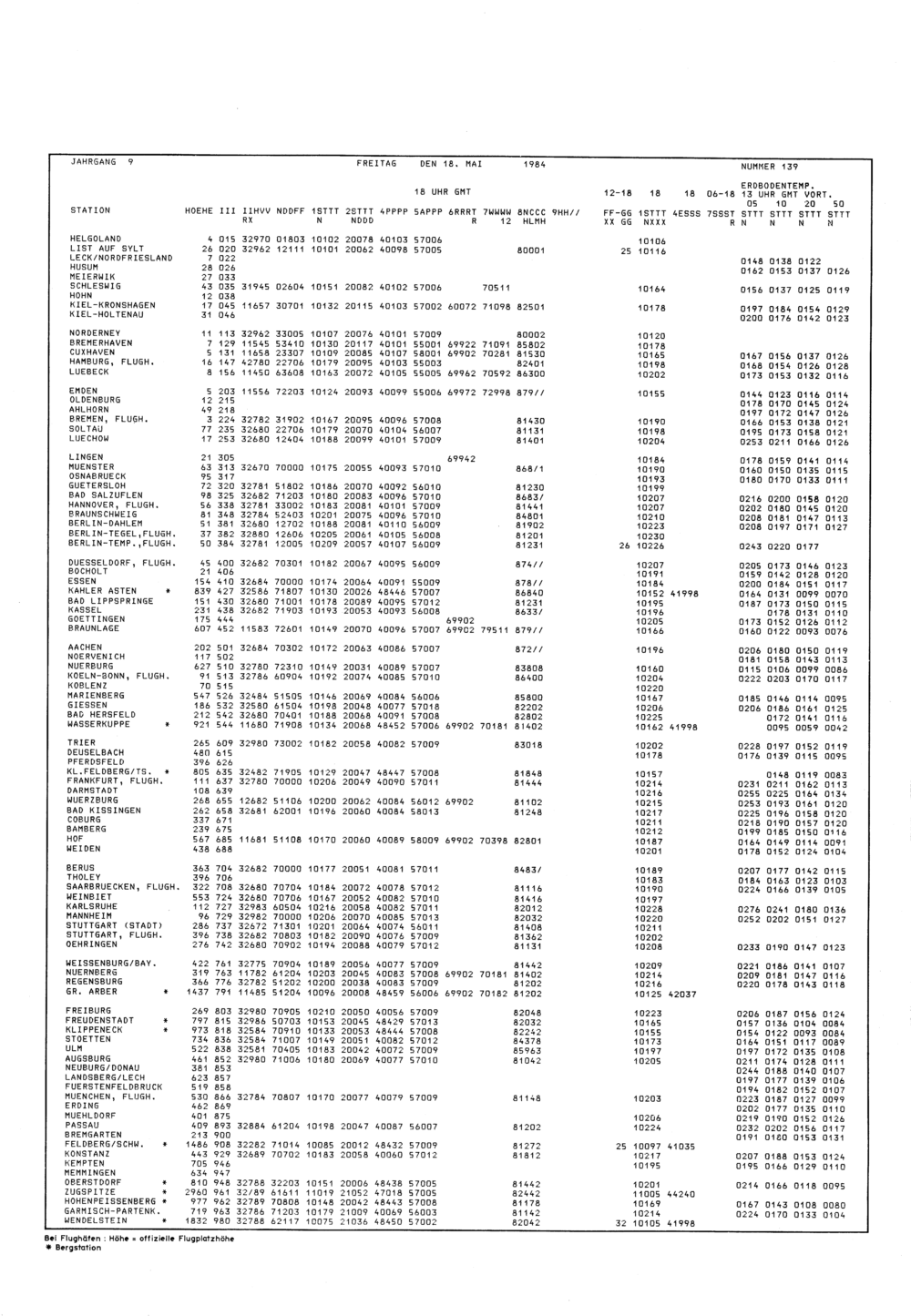 Europäischer Wetterbericht. Beilage 1, Bodenwettermeldungen. 1976-1994