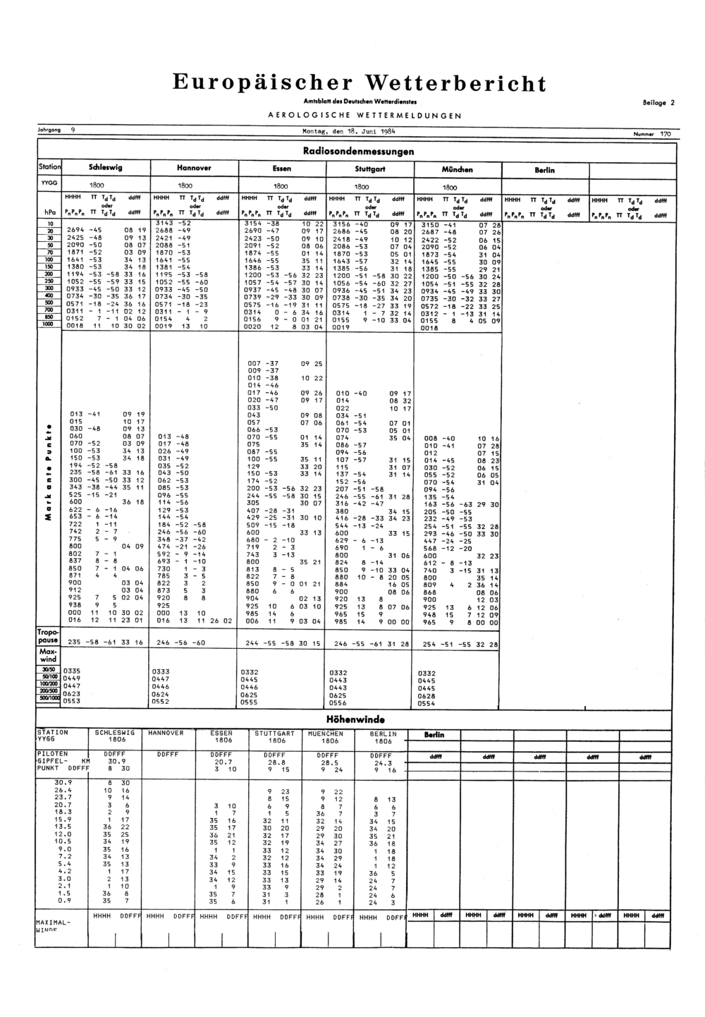 Europäischer Wetterbericht. Beilage 1, Bodenwettermeldungen. 1976-1994