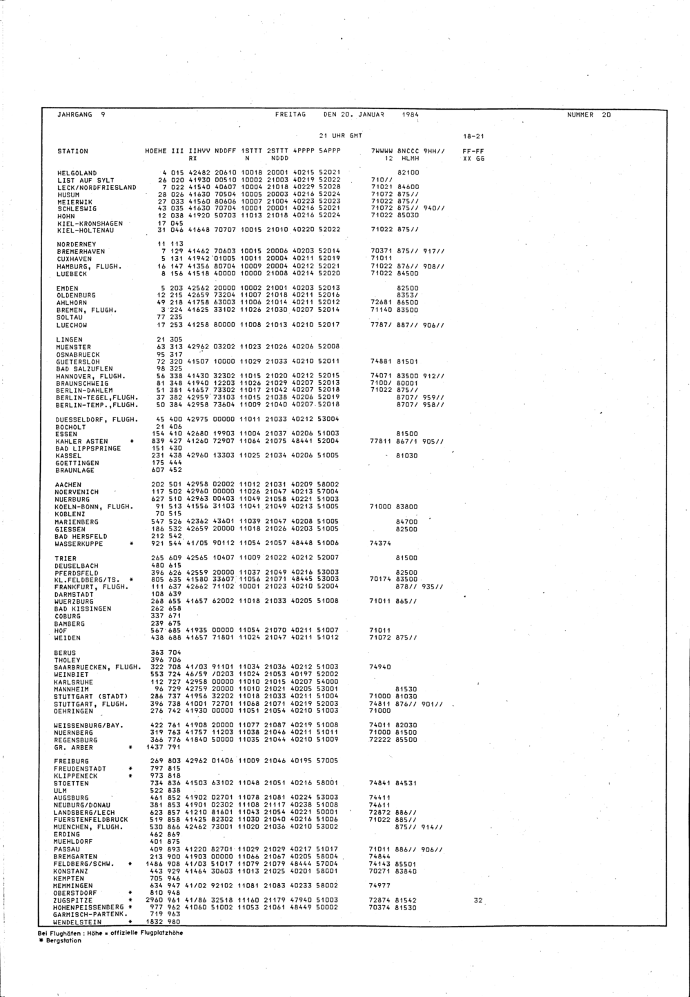 Europäischer Wetterbericht. Beilage 1, Bodenwettermeldungen. 1976-1994