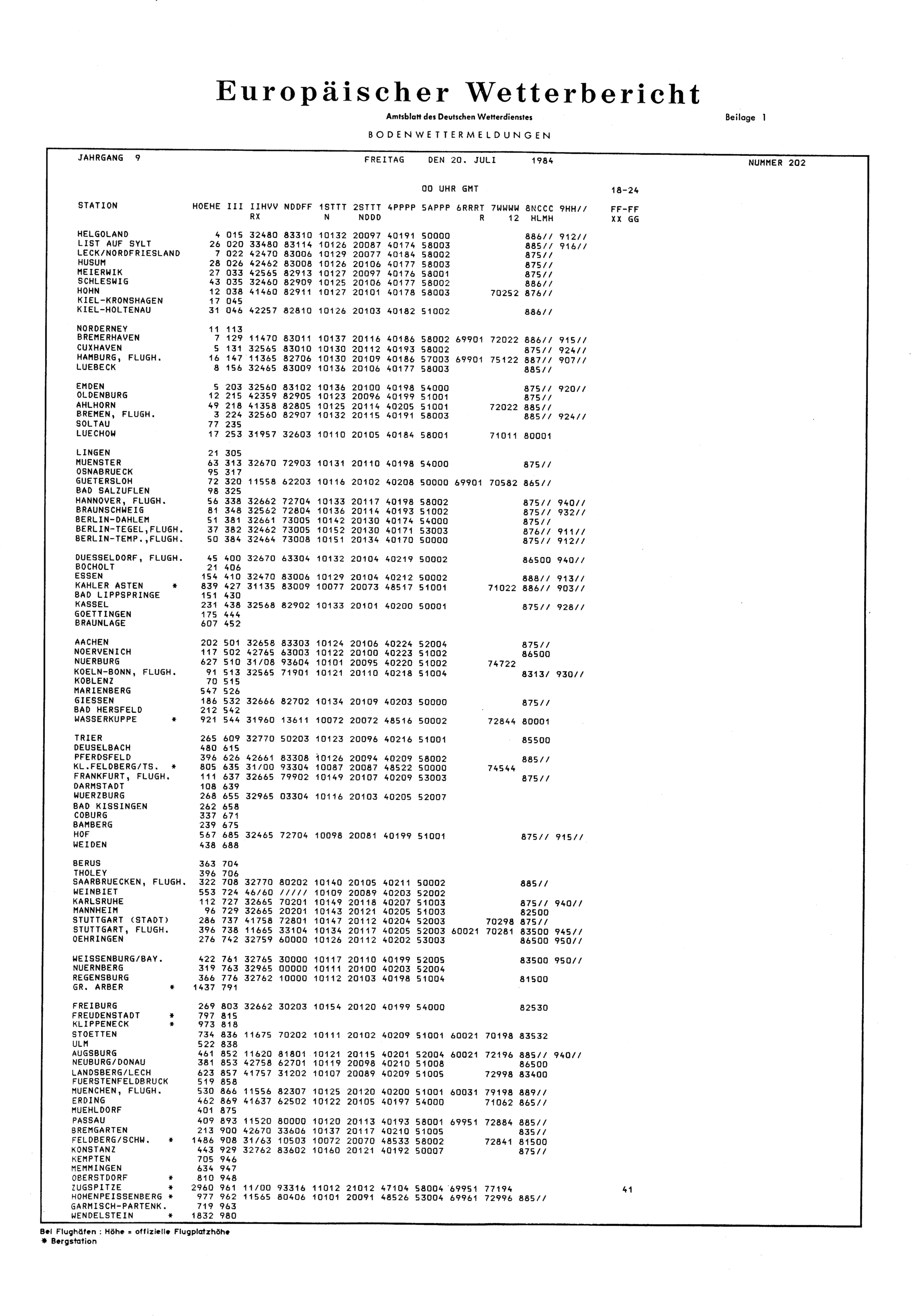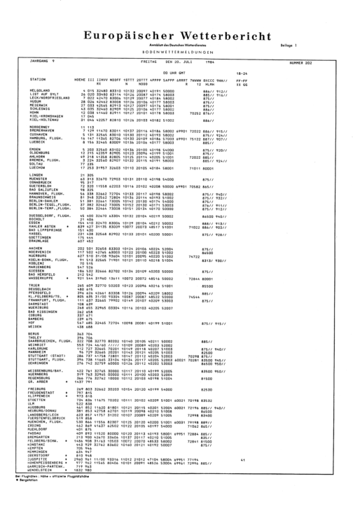 Europäischer Wetterbericht. Beilage 1, Bodenwettermeldungen. 1976-1994