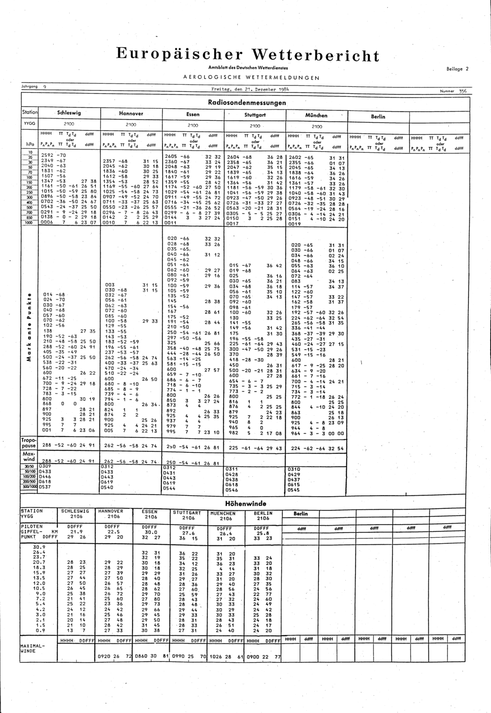 Europäischer Wetterbericht. Beilage 1, Bodenwettermeldungen. 1976-1994