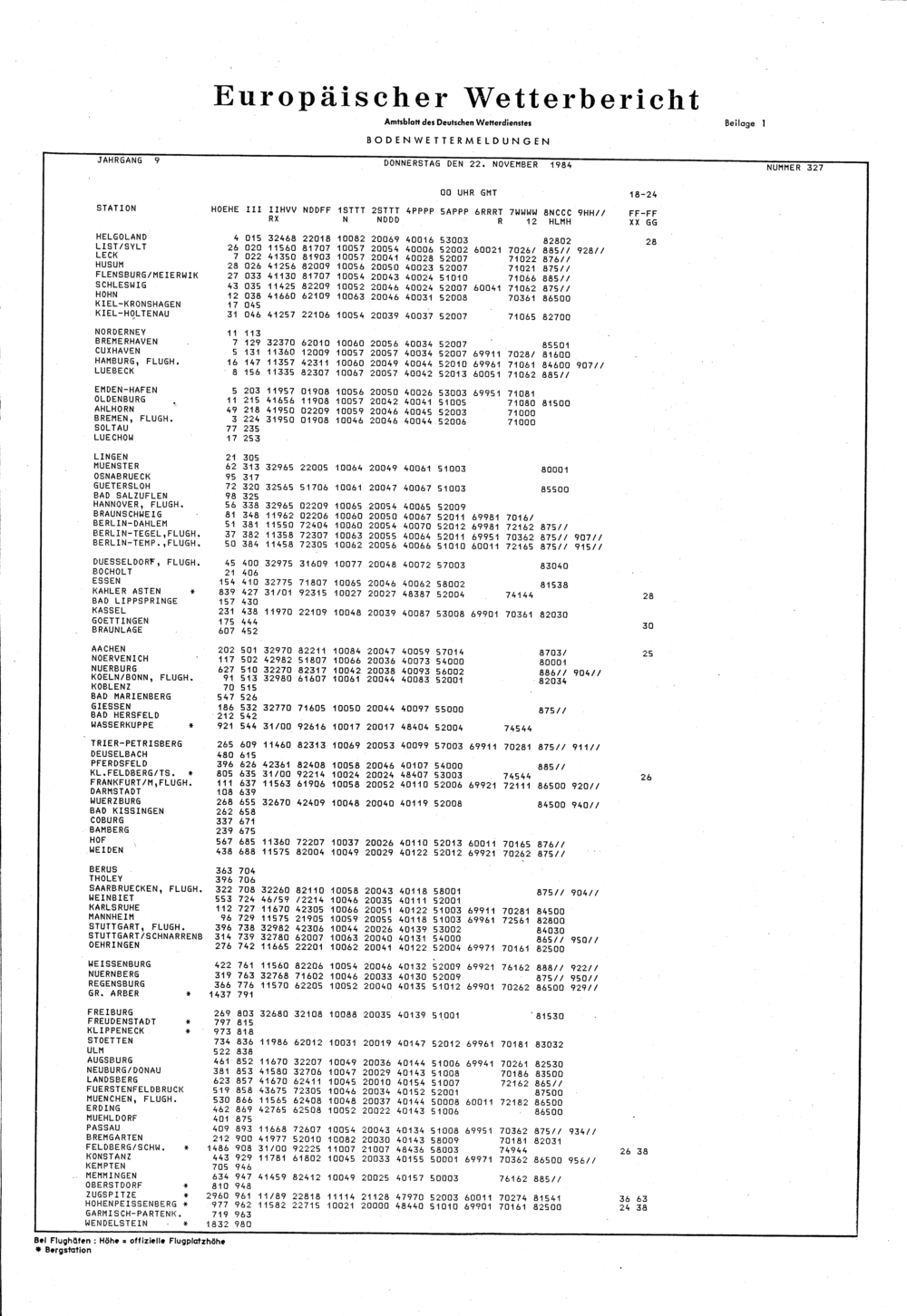 Europäischer Wetterbericht. Beilage 1, Bodenwettermeldungen. 1976-1994