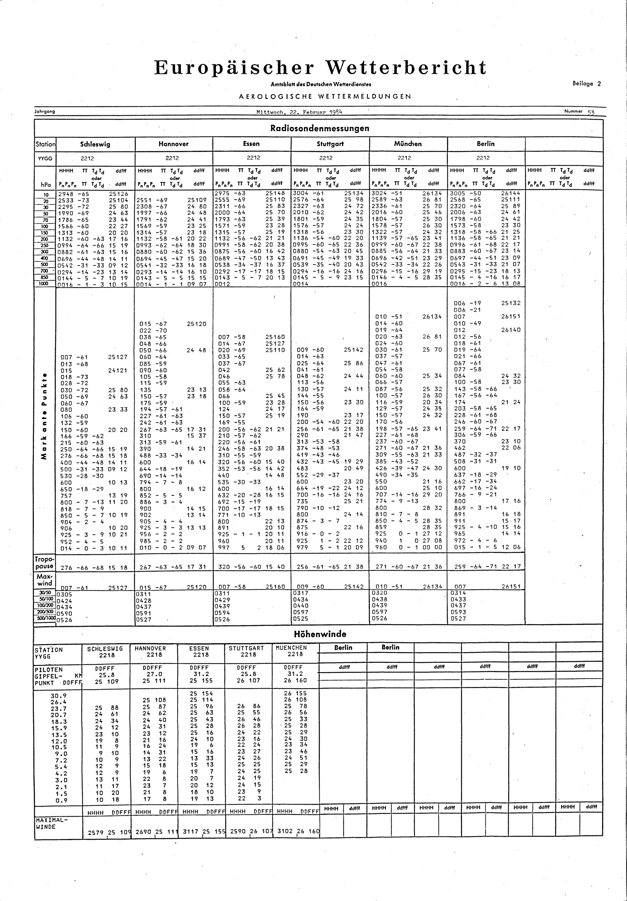 Europäischer Wetterbericht. Beilage 1, Bodenwettermeldungen. 1976-1994