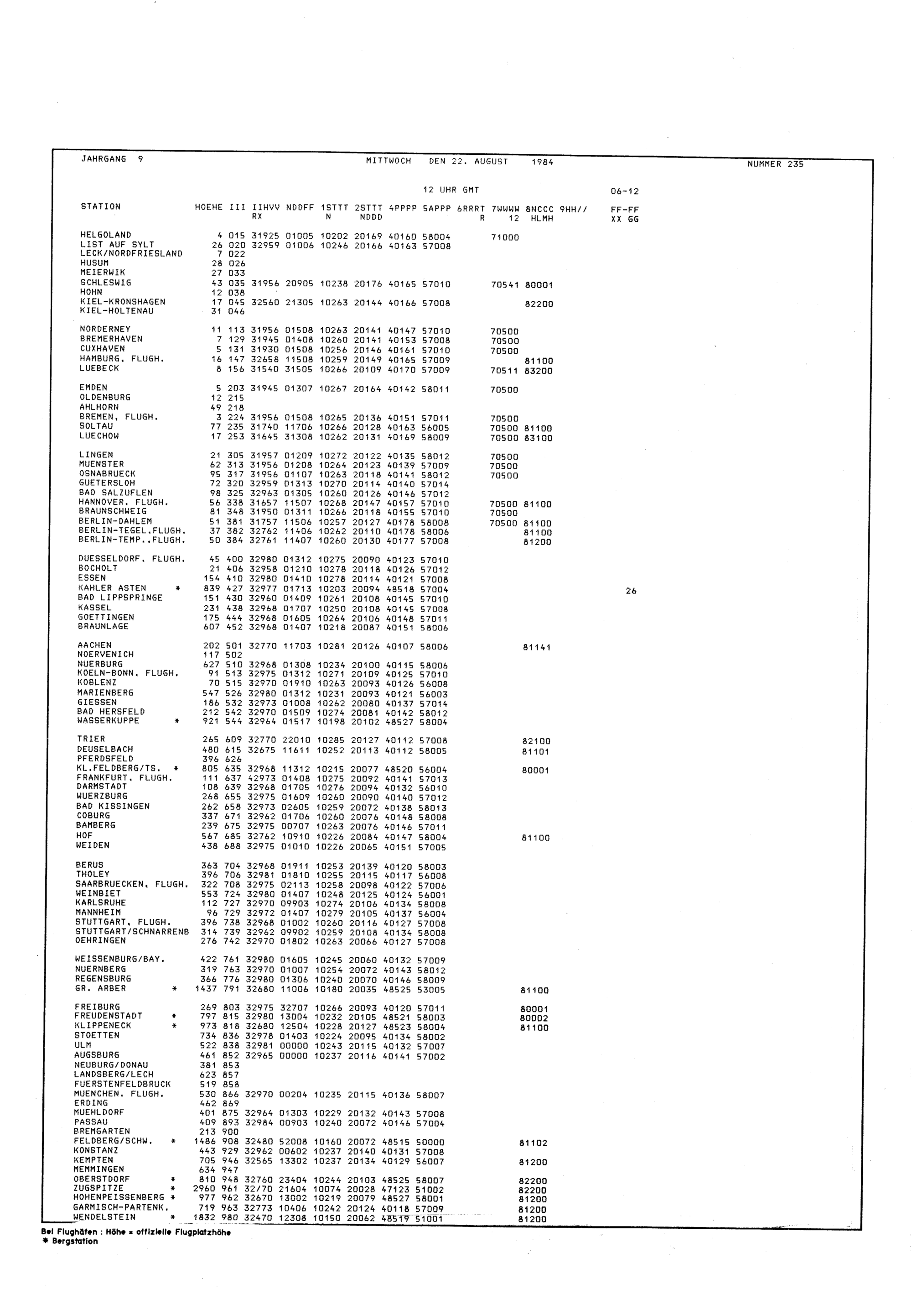 Europäischer Wetterbericht. Beilage 1, Bodenwettermeldungen. 1976-1994