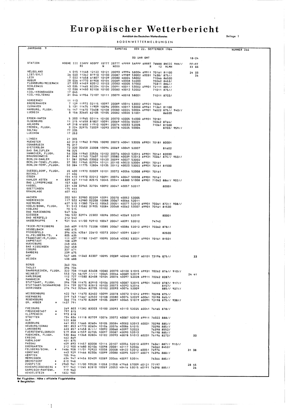 Europäischer Wetterbericht. Beilage 1, Bodenwettermeldungen. 1976-1994