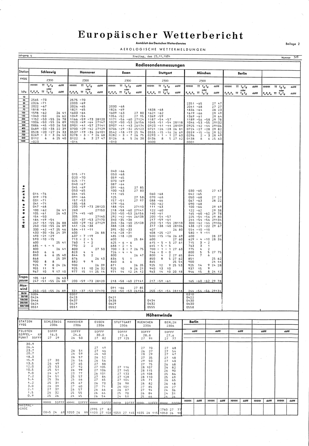 Europäischer Wetterbericht. Beilage 1, Bodenwettermeldungen. 1976-1994