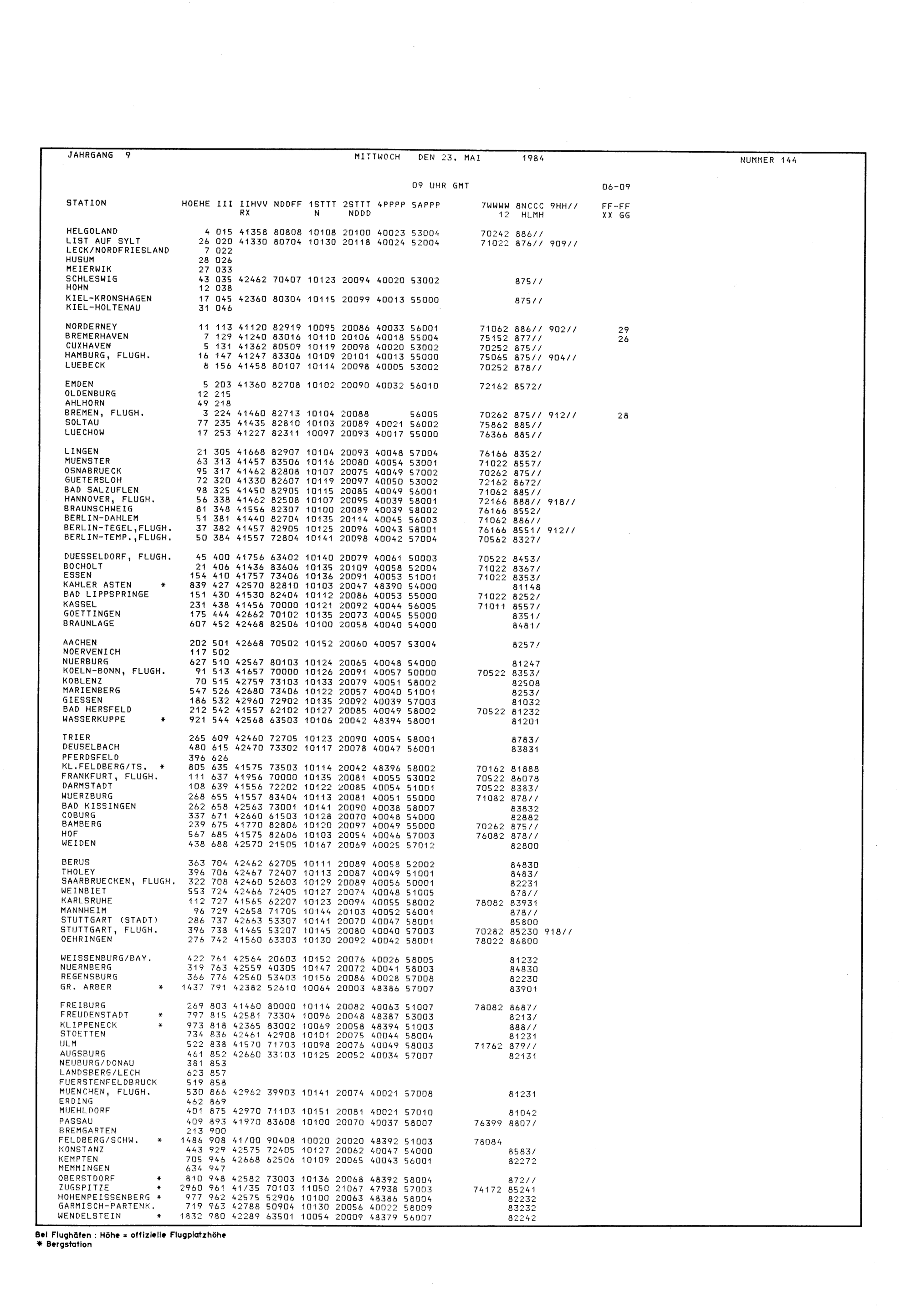 Europäischer Wetterbericht. Beilage 1, Bodenwettermeldungen. 1976-1994