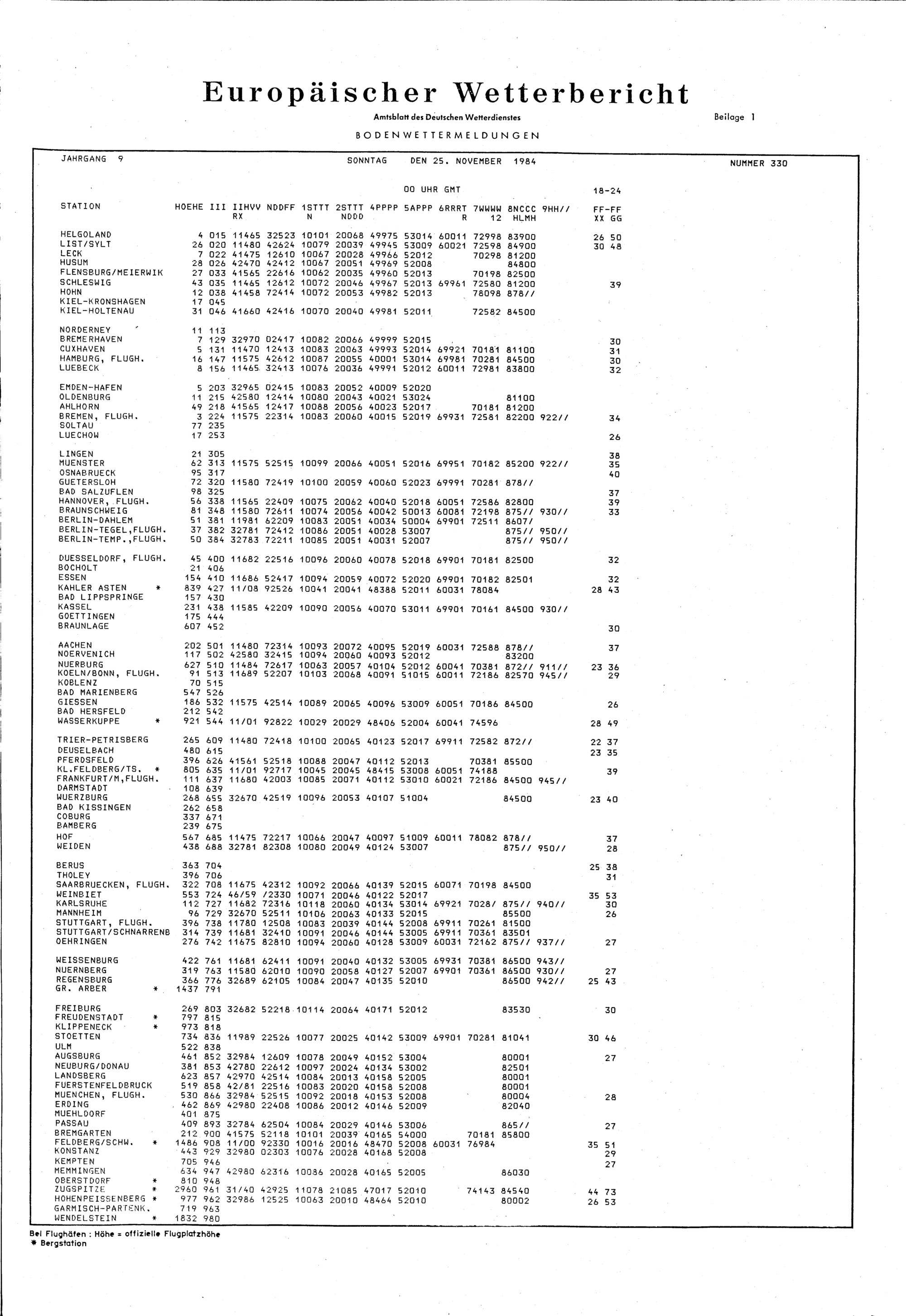 Europäischer Wetterbericht. Beilage 1, Bodenwettermeldungen. 1976-1994