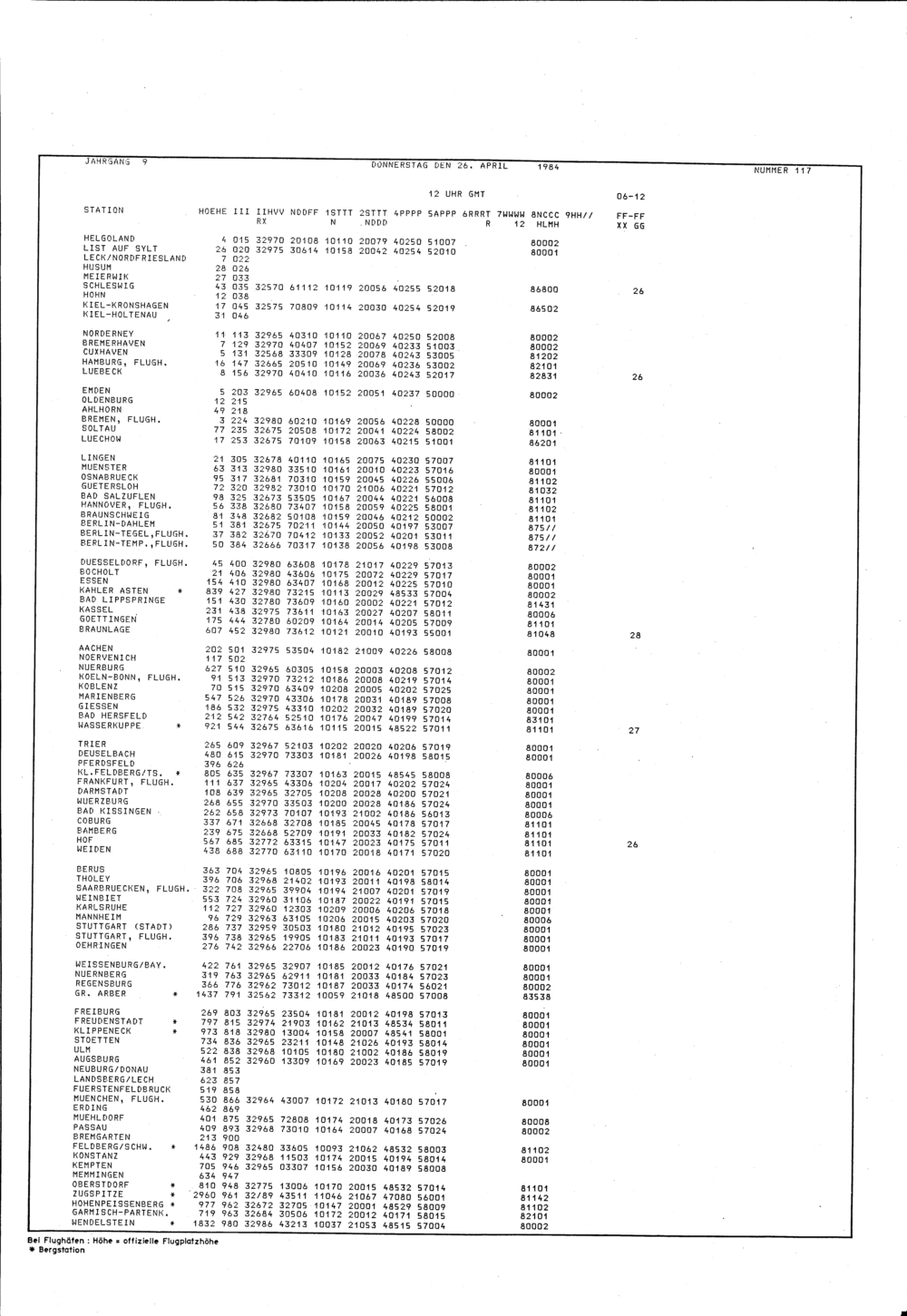 Europäischer Wetterbericht. Beilage 1, Bodenwettermeldungen. 1976-1994