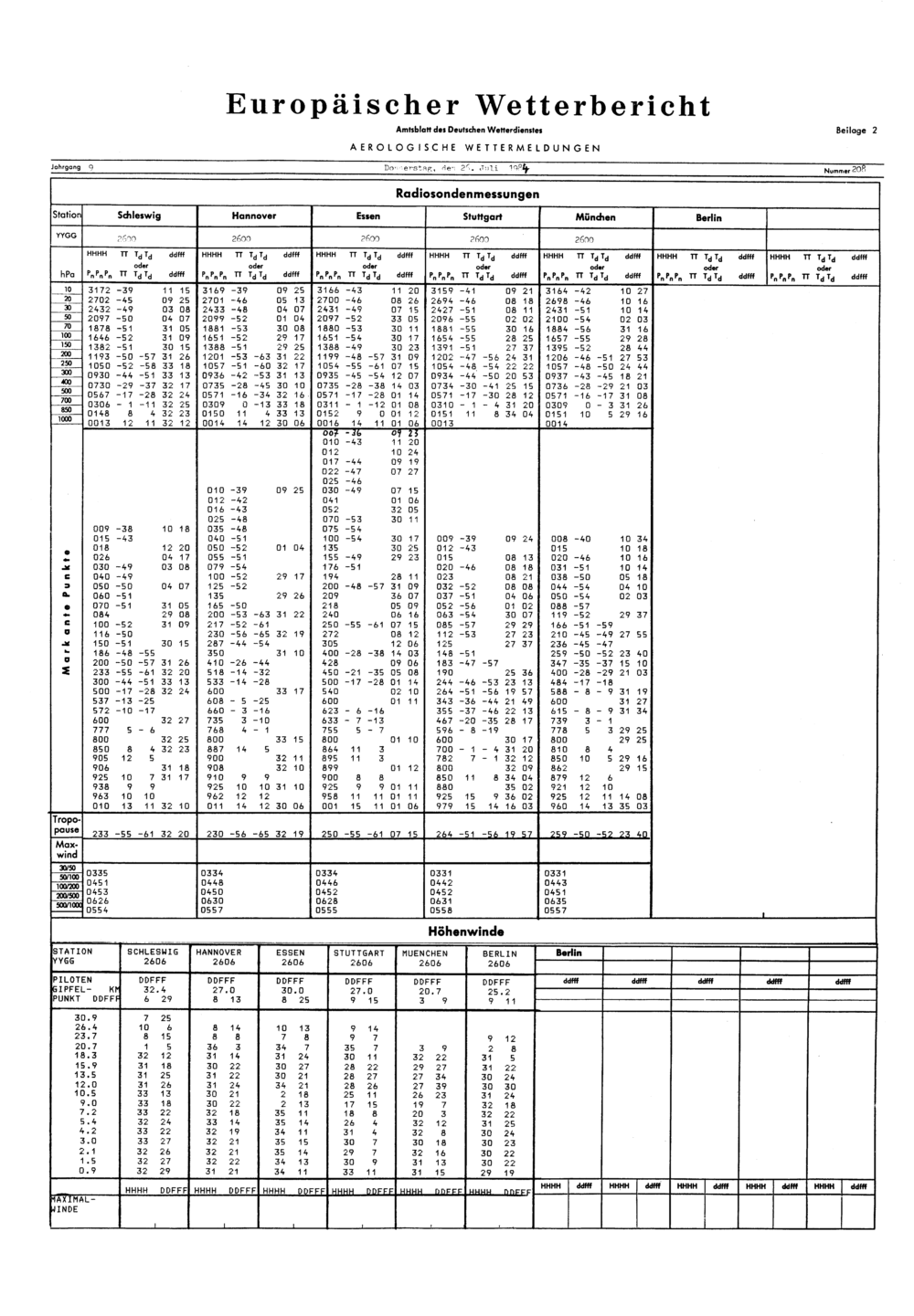 Europäischer Wetterbericht. Beilage 1, Bodenwettermeldungen. 1976-1994