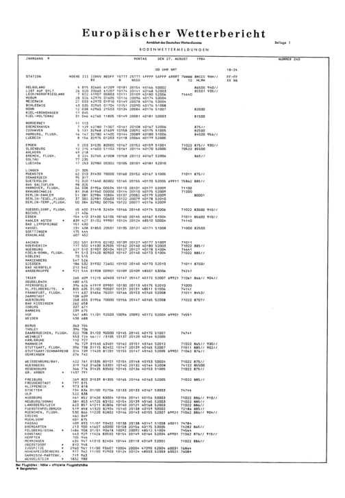 Europäischer Wetterbericht. Beilage 1, Bodenwettermeldungen. 1976-1994