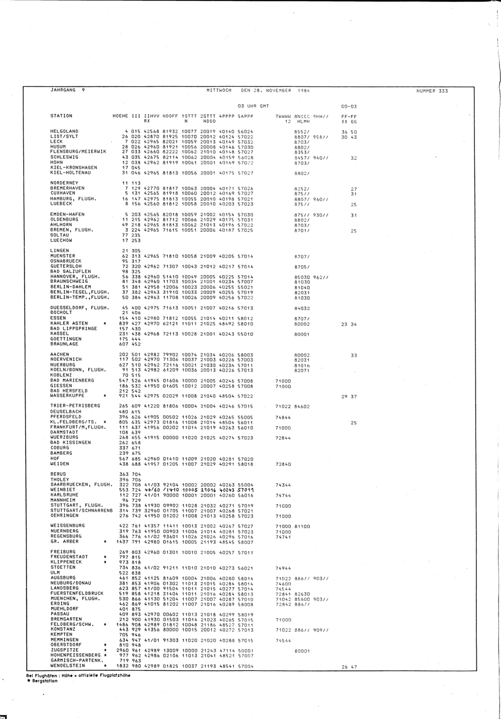 Europäischer Wetterbericht. Beilage 1, Bodenwettermeldungen. 1976-1994