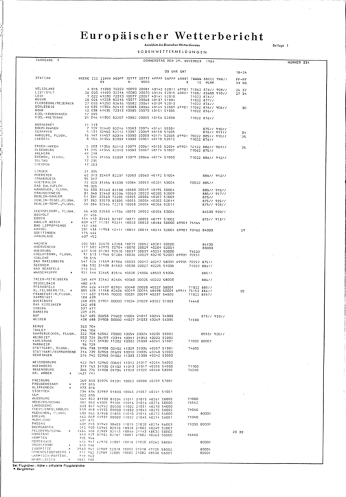 Europäischer Wetterbericht. Beilage 1, Bodenwettermeldungen. 1976-1994