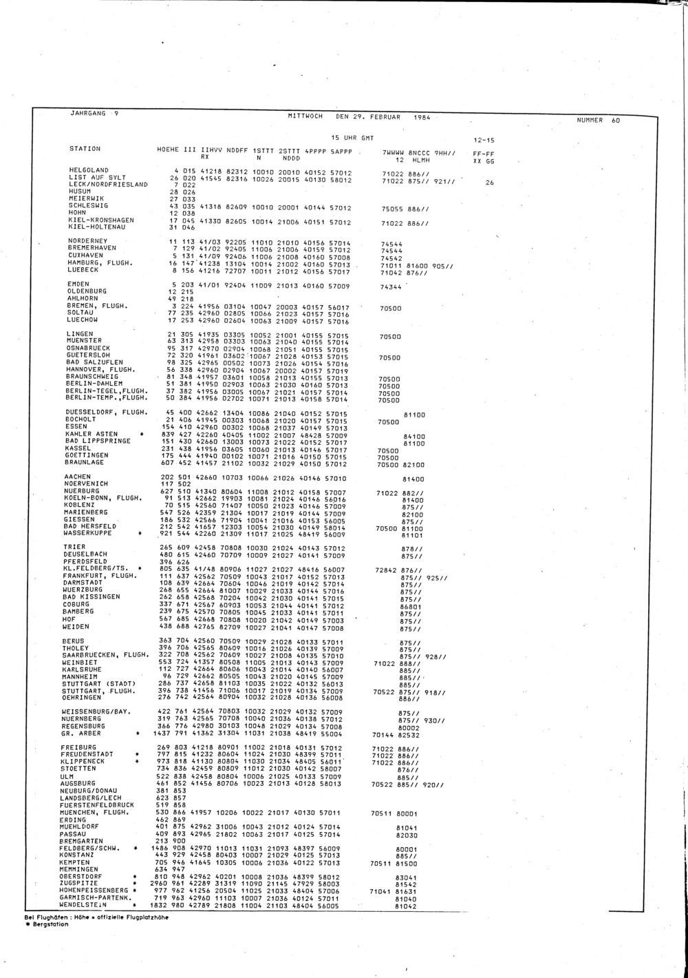 Europäischer Wetterbericht. Beilage 1, Bodenwettermeldungen. 1976-1994