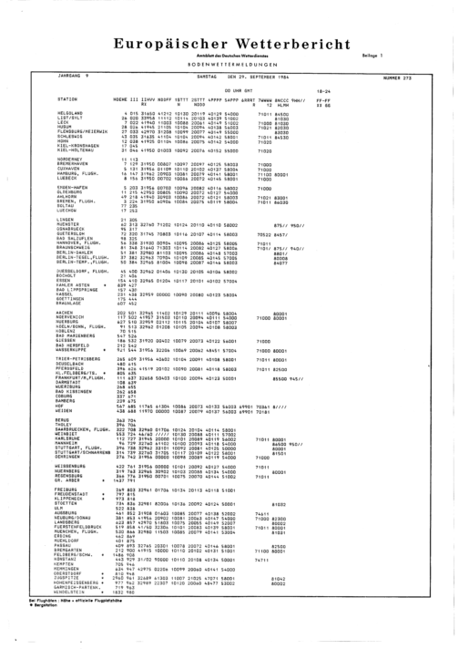 Europäischer Wetterbericht. Beilage 1, Bodenwettermeldungen. 1976-1994