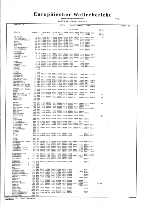 Europäischer Wetterbericht. Beilage 1, Bodenwettermeldungen. 1976-1994