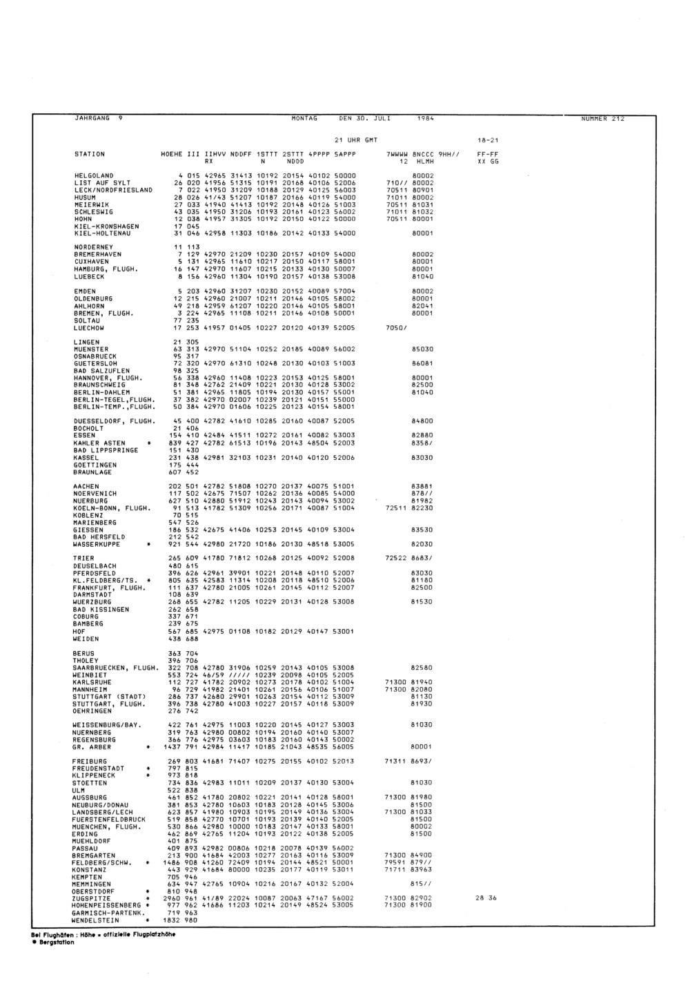 Europäischer Wetterbericht. Beilage 1, Bodenwettermeldungen. 1976-1994