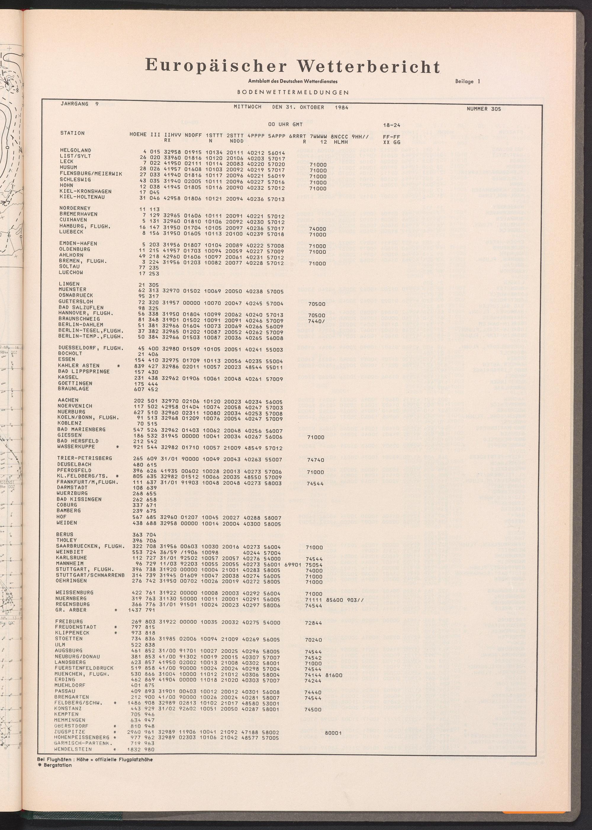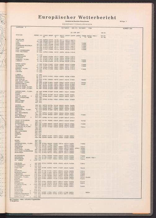 Europäischer Wetterbericht. Beilage 1, Bodenwettermeldungen. 1976-1994