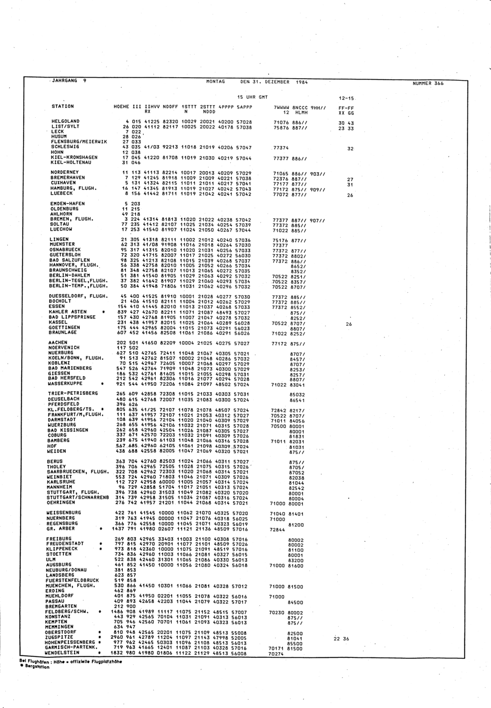 Europäischer Wetterbericht. Beilage 1, Bodenwettermeldungen. 1976-1994