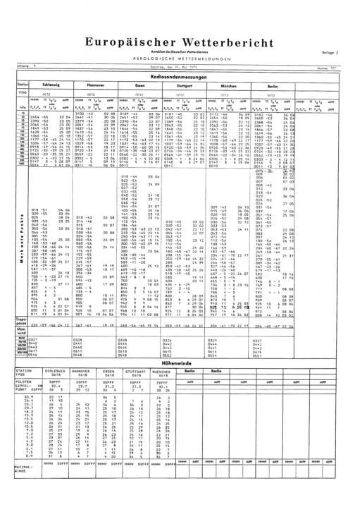 Europäischer Wetterbericht. Beilage 1, Bodenwettermeldungen. 1976-1994
