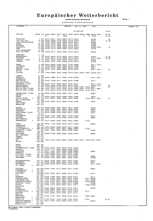 Europäischer Wetterbericht. Beilage 1, Bodenwettermeldungen. 1976-1994