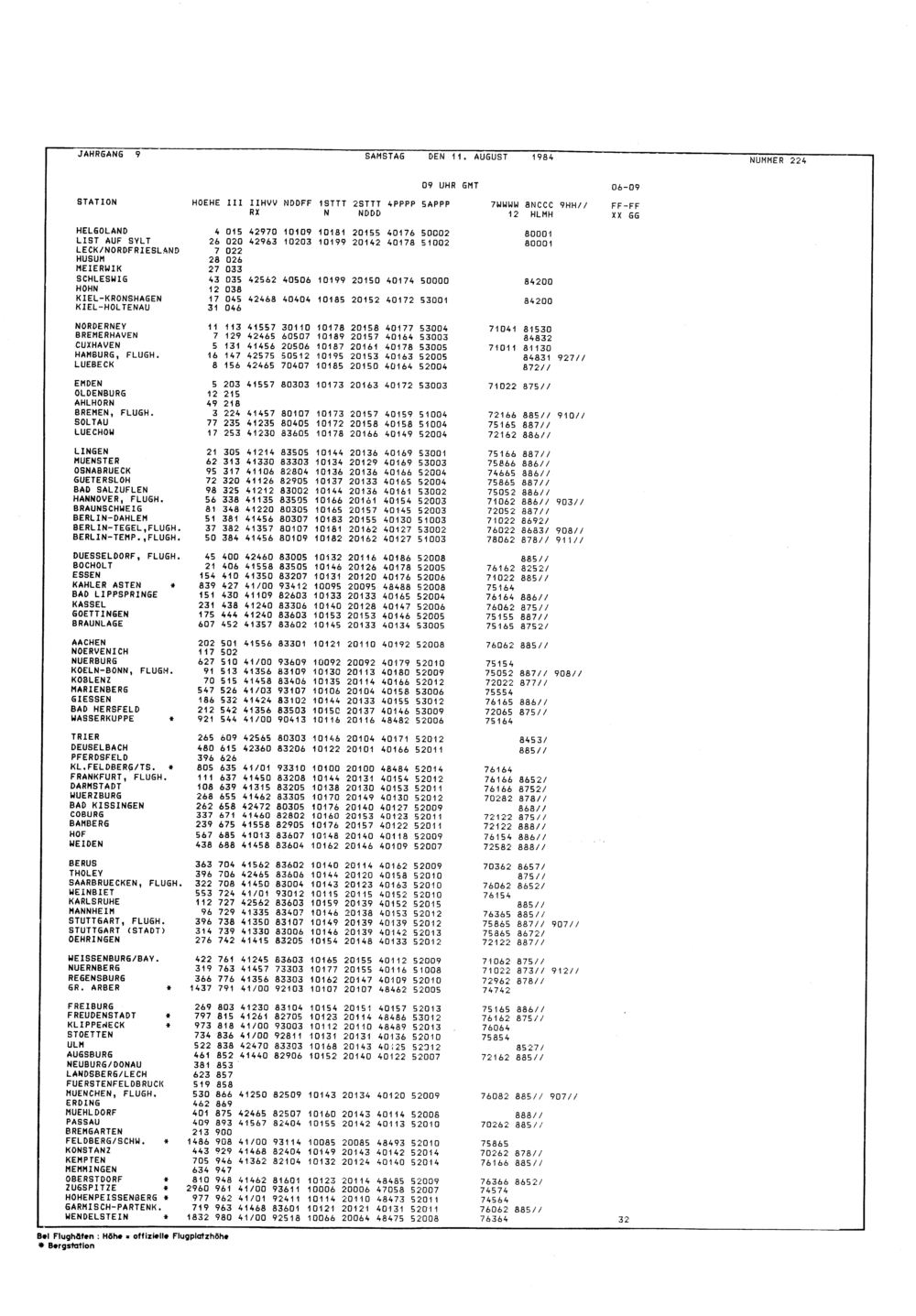 Europäischer Wetterbericht. Beilage 1, Bodenwettermeldungen. 1976-1994