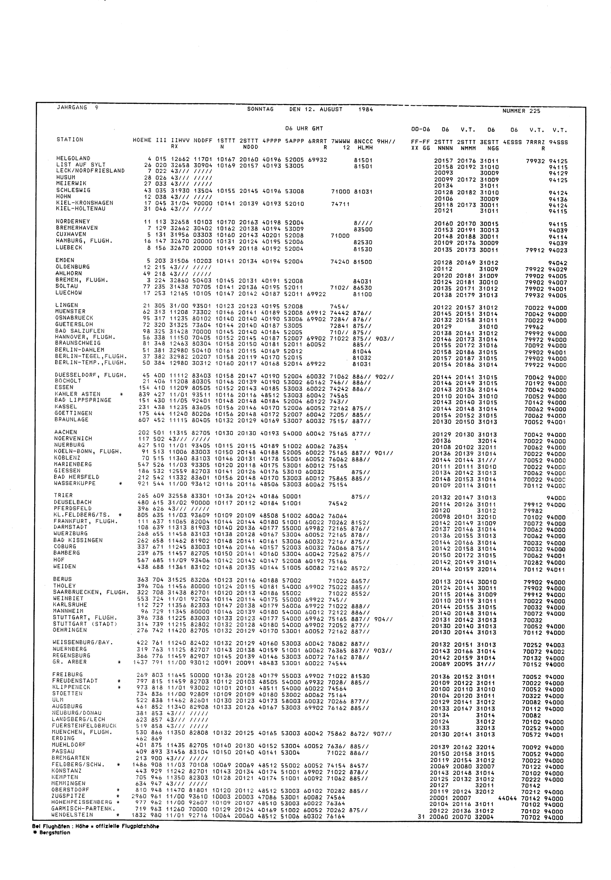 Europäischer Wetterbericht. Beilage 1, Bodenwettermeldungen. 1976-1994