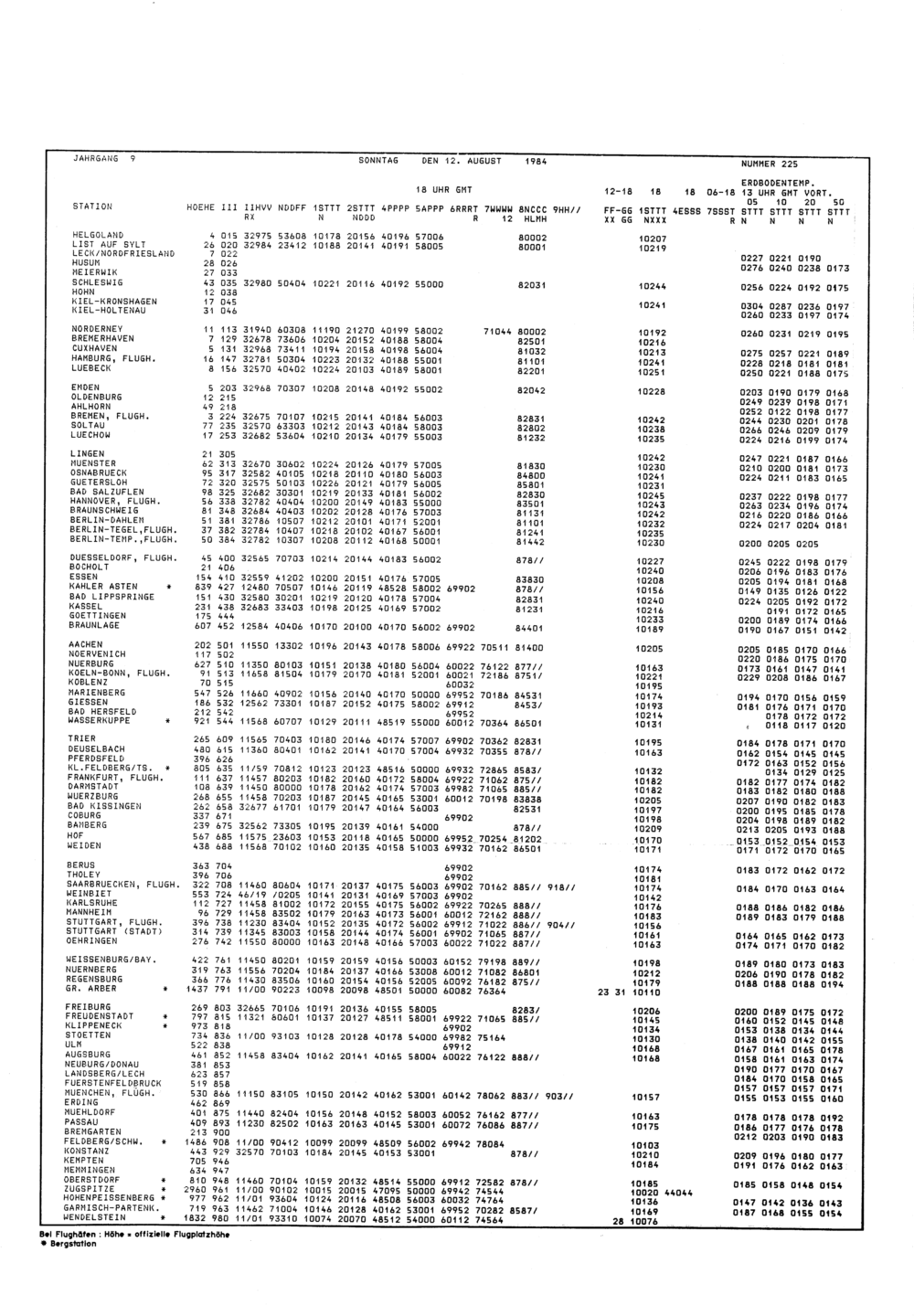 Europäischer Wetterbericht. Beilage 1, Bodenwettermeldungen. 1976-1994