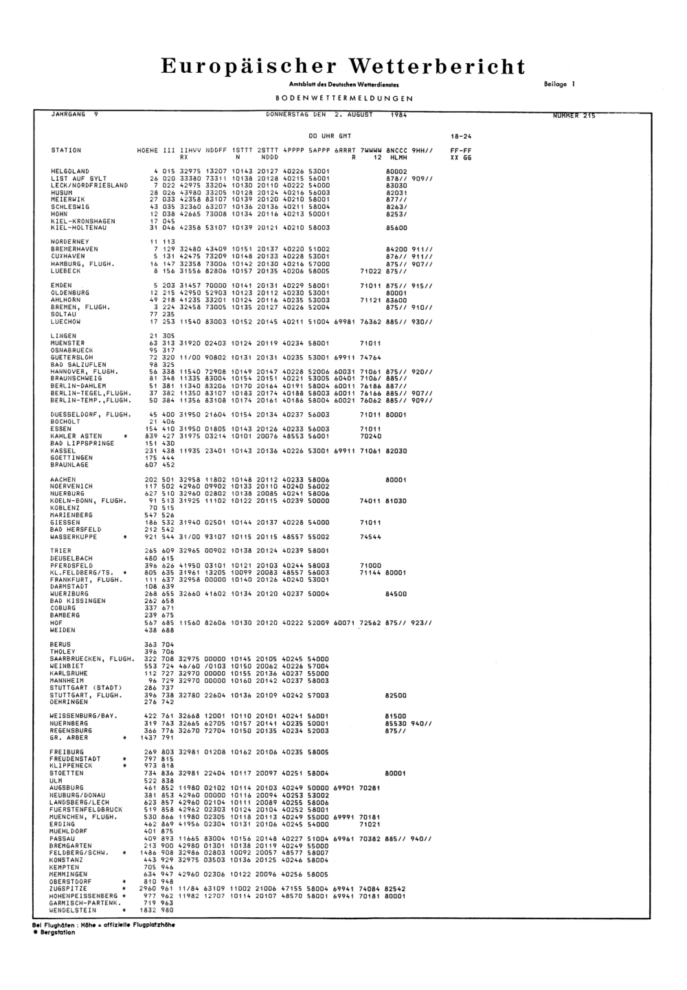 Europäischer Wetterbericht. Beilage 1, Bodenwettermeldungen. 1976-1994